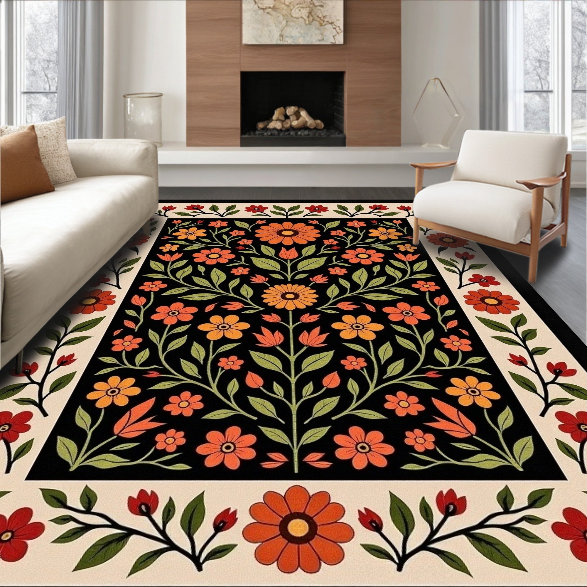 Heirloom Garden Motif Floor Mat Classic Vintage Inspired Decorative Rug(Beige)