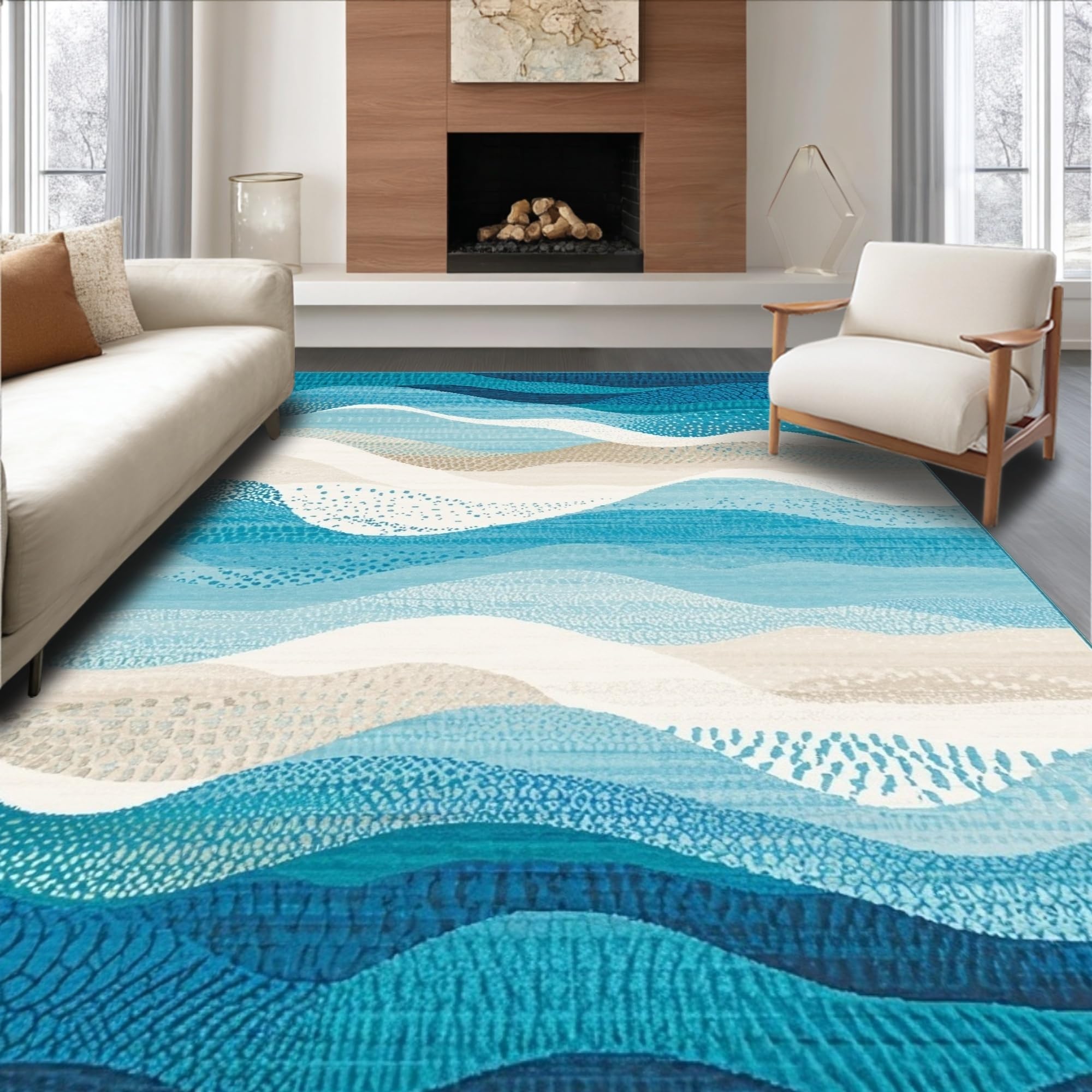 Modern Coastal Stripe Area with Wave Inspired Bluish Gray and Beige Lines(Gray)