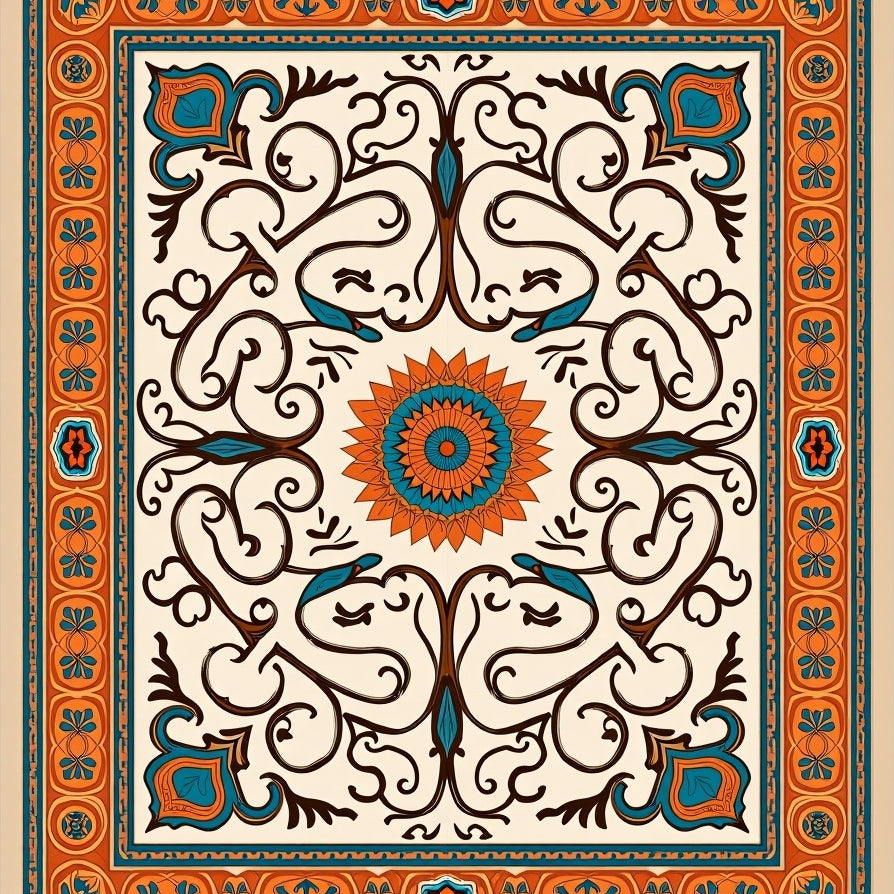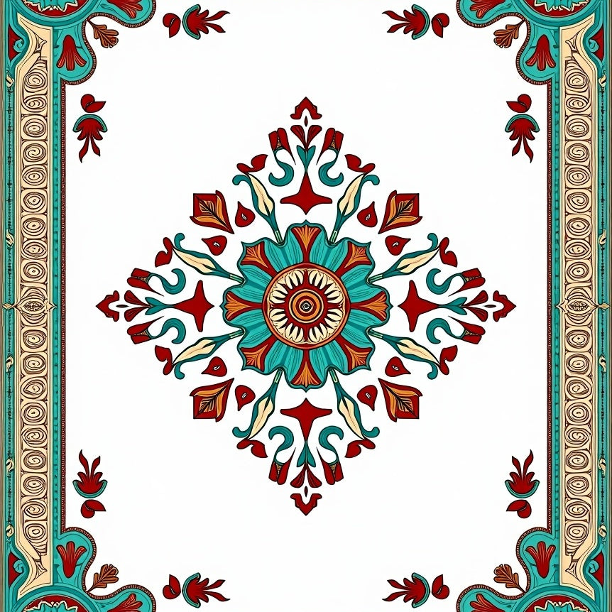 Heritage Tapestry Motif with Decorative Flourish Details(Turquoise)