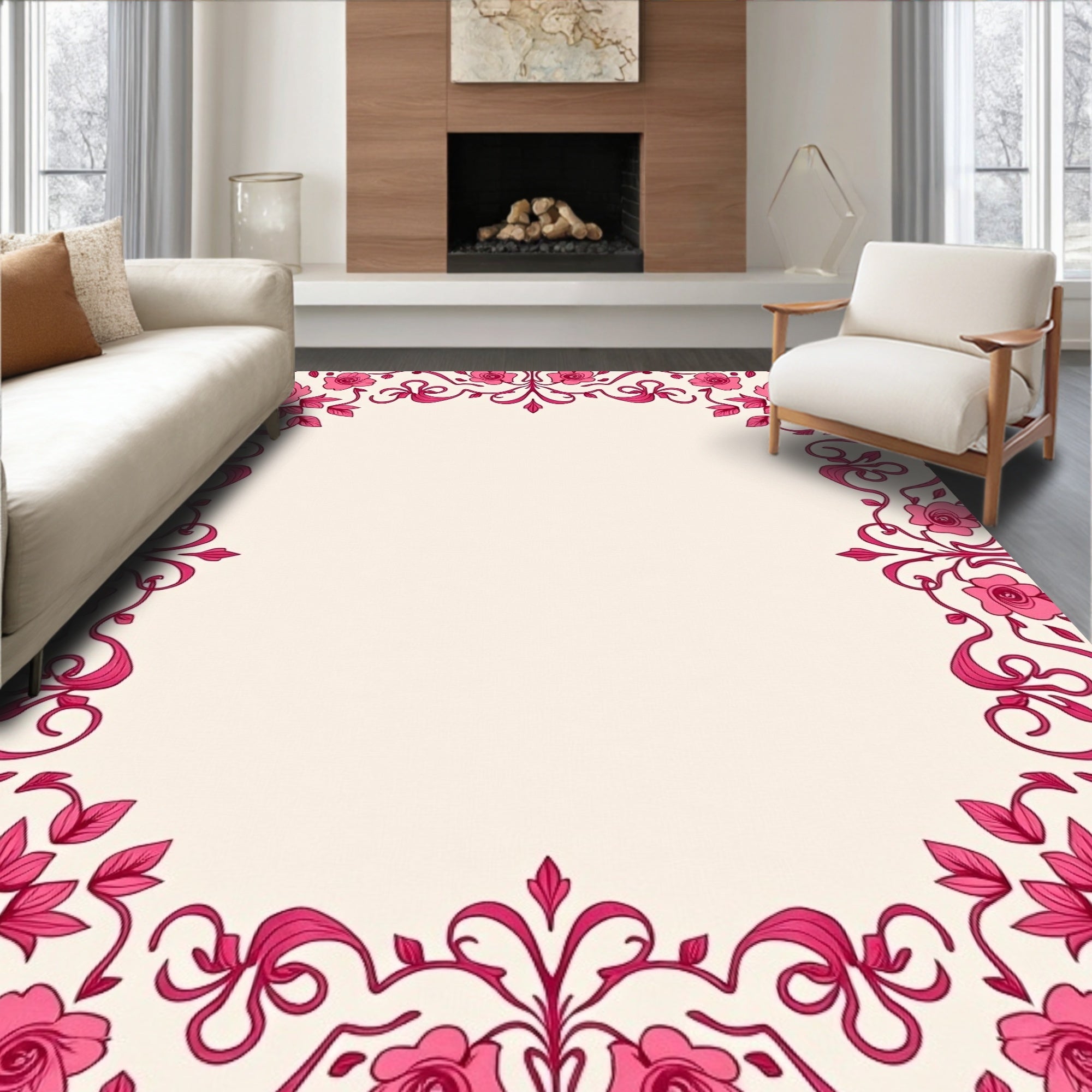 Heritage Rose Bouquet Scroll Easy Care Touch Interior Accent(Pink)