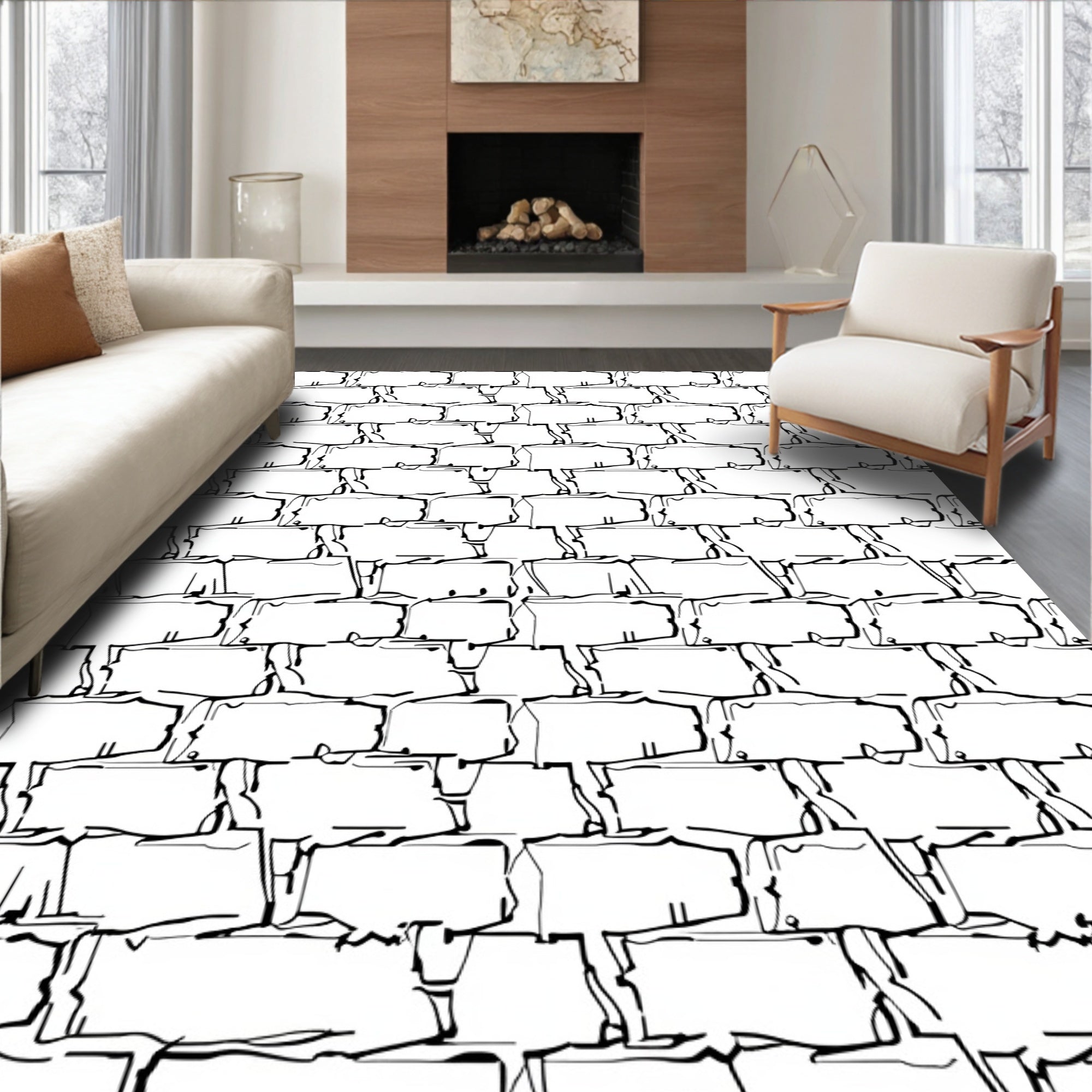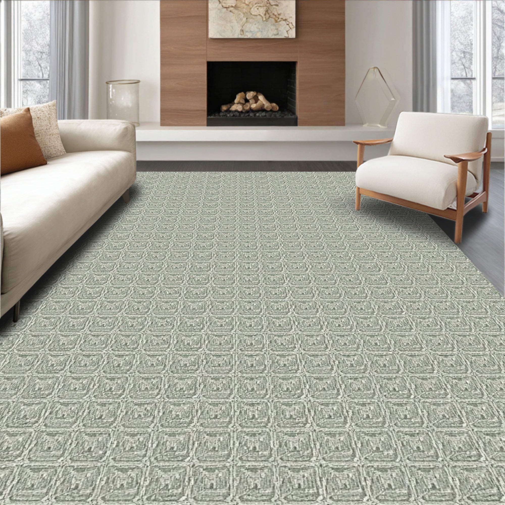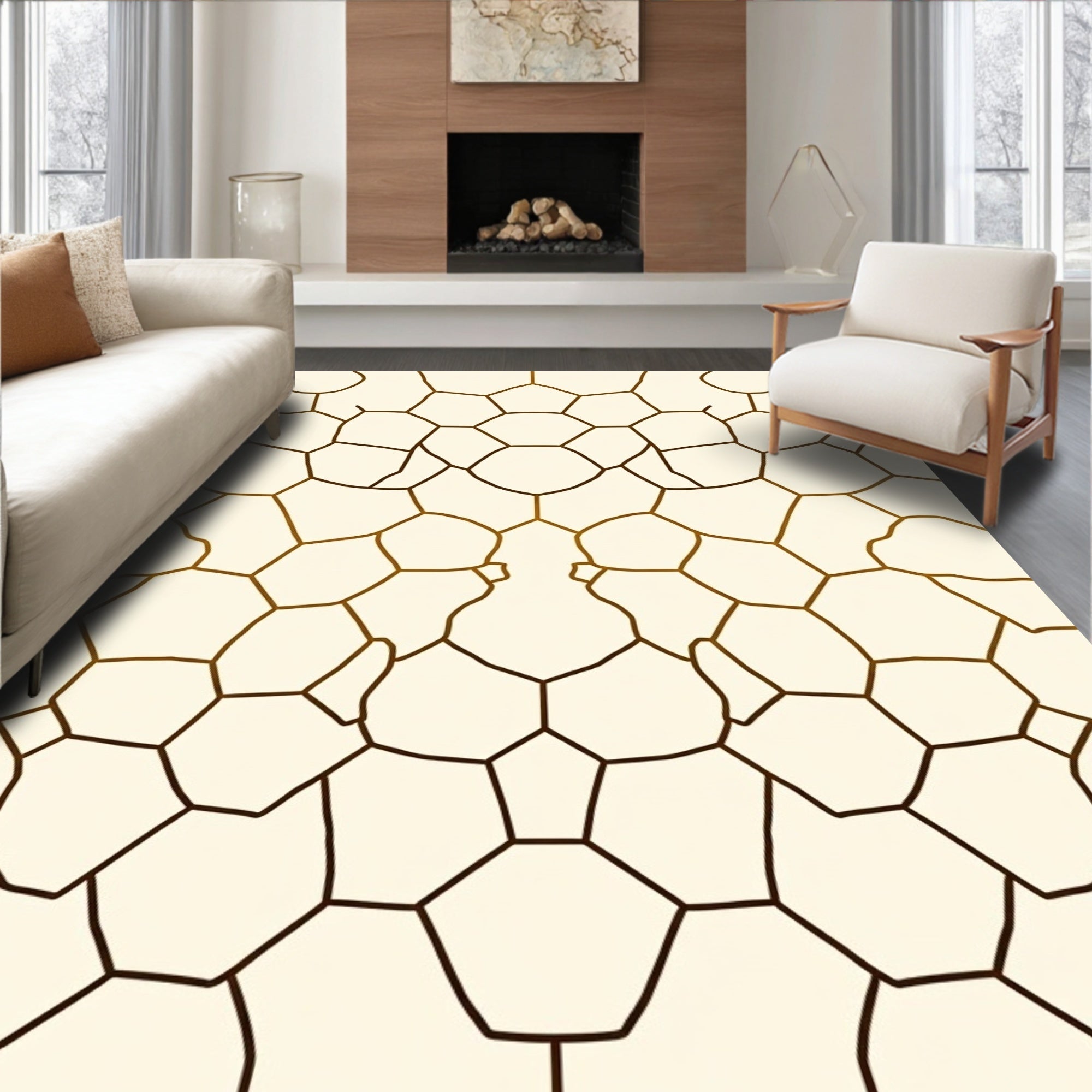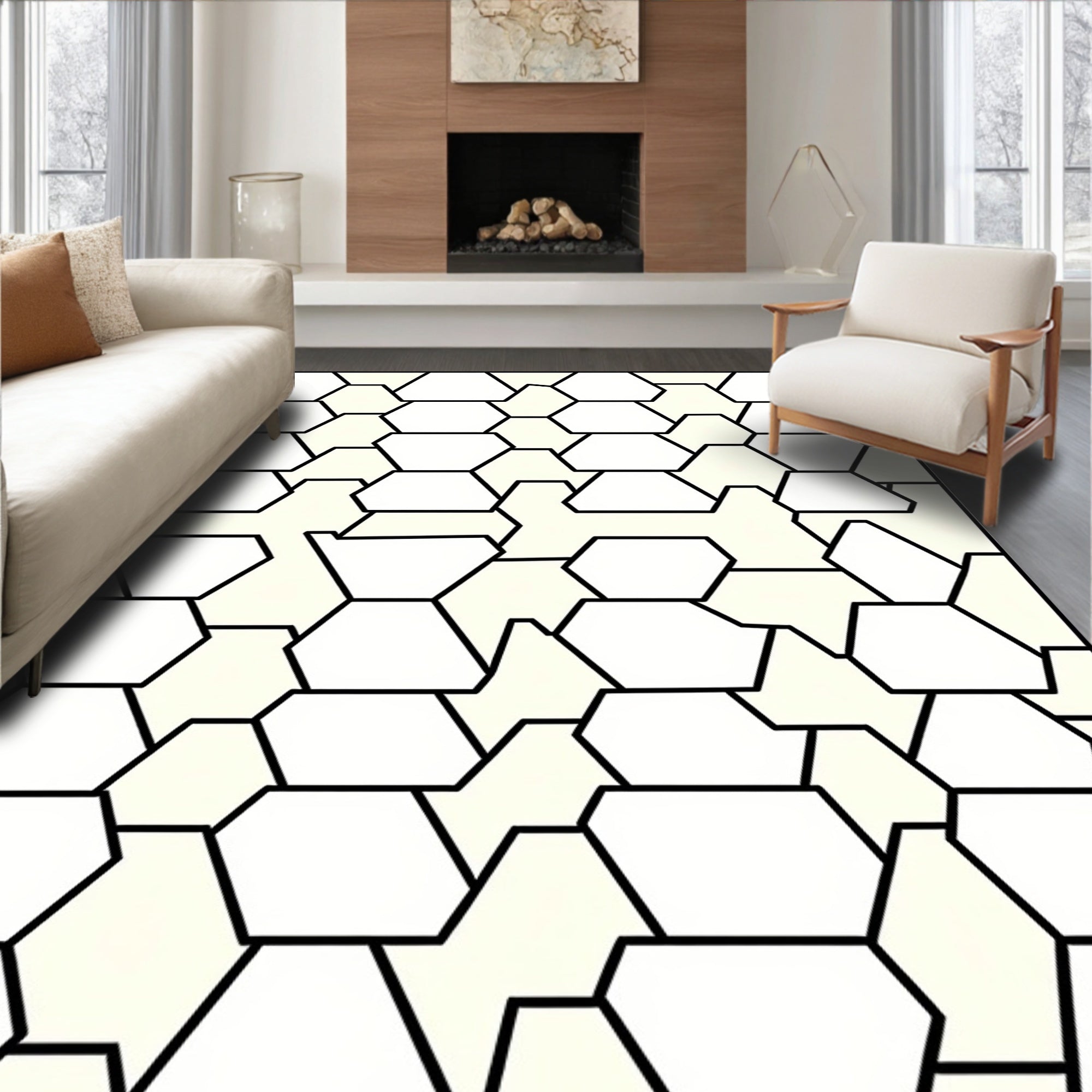 Hexagonal Grid Contemporary Floor with Angular Tessellation(Ivory)