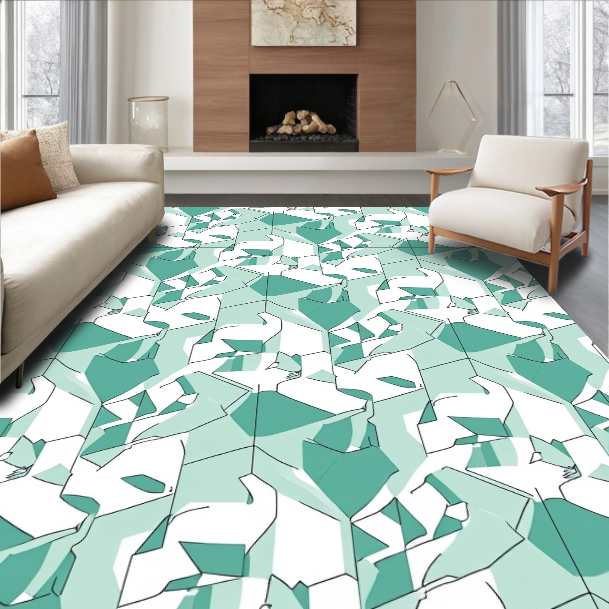 Hexagonal Hive Network Accent with Modern Angular Motifs(Green)