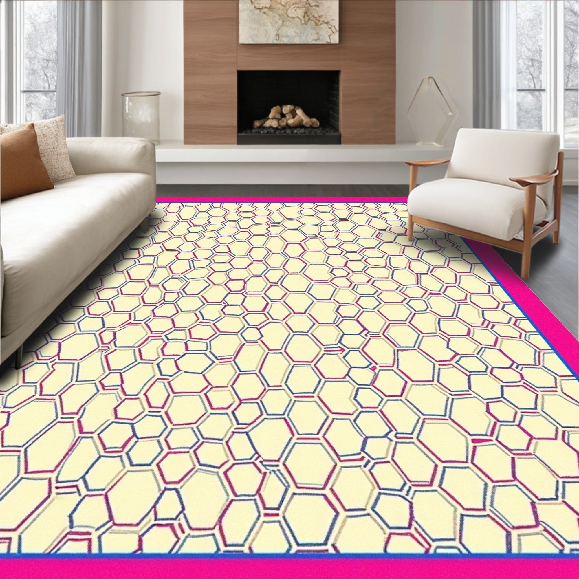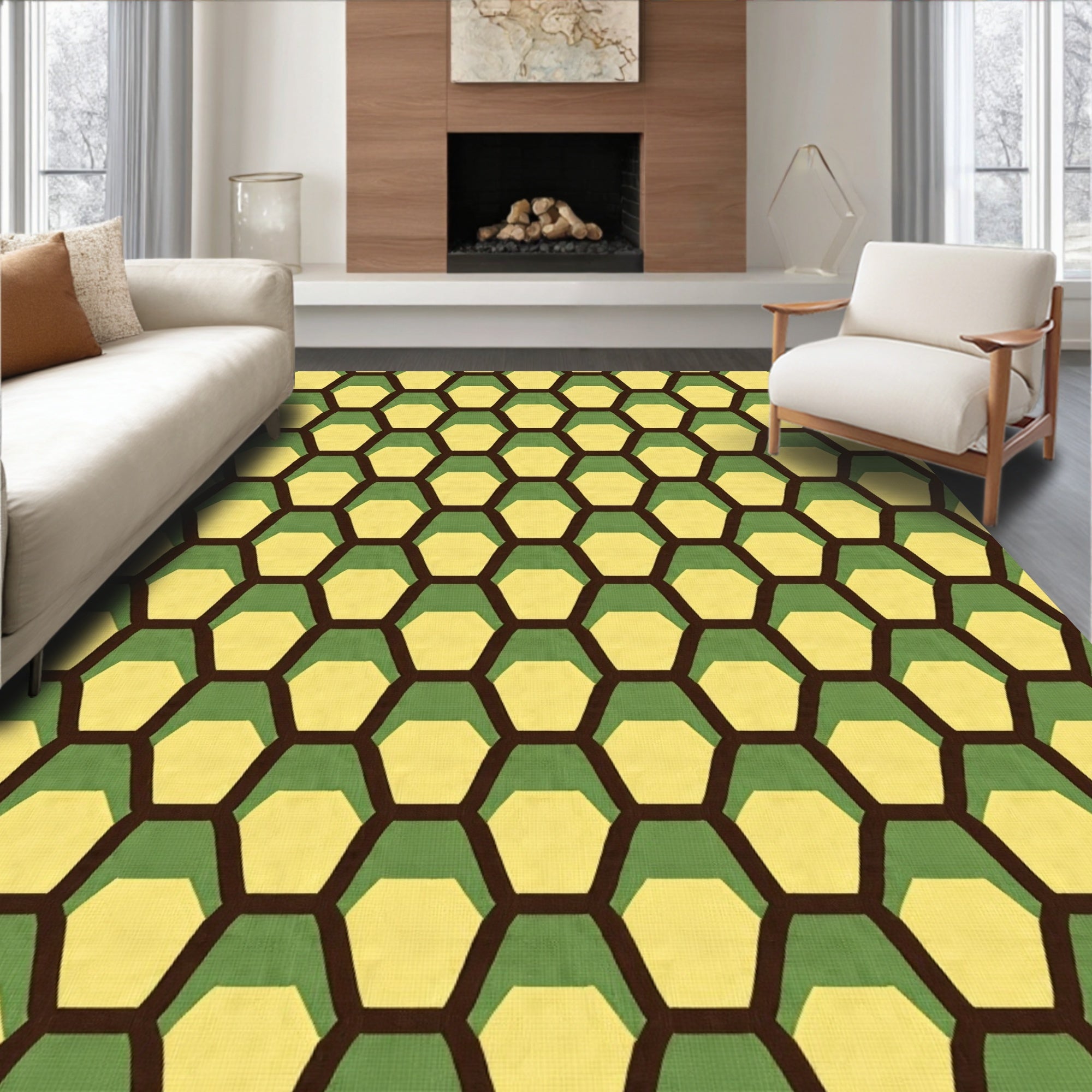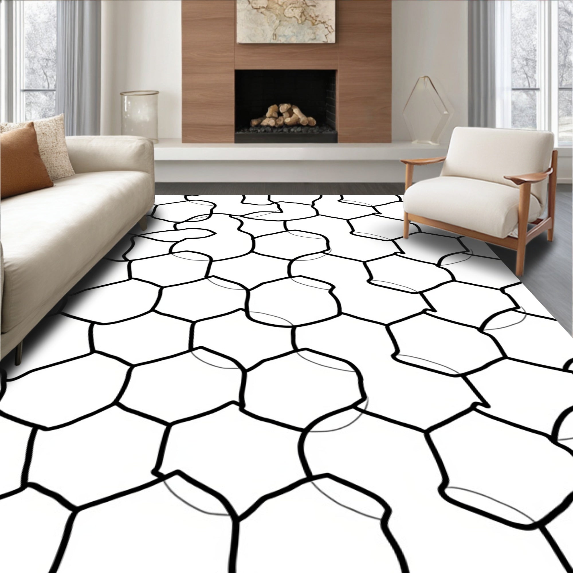 Hexagonal Lattice Contemporary Floor Covering(Beige)