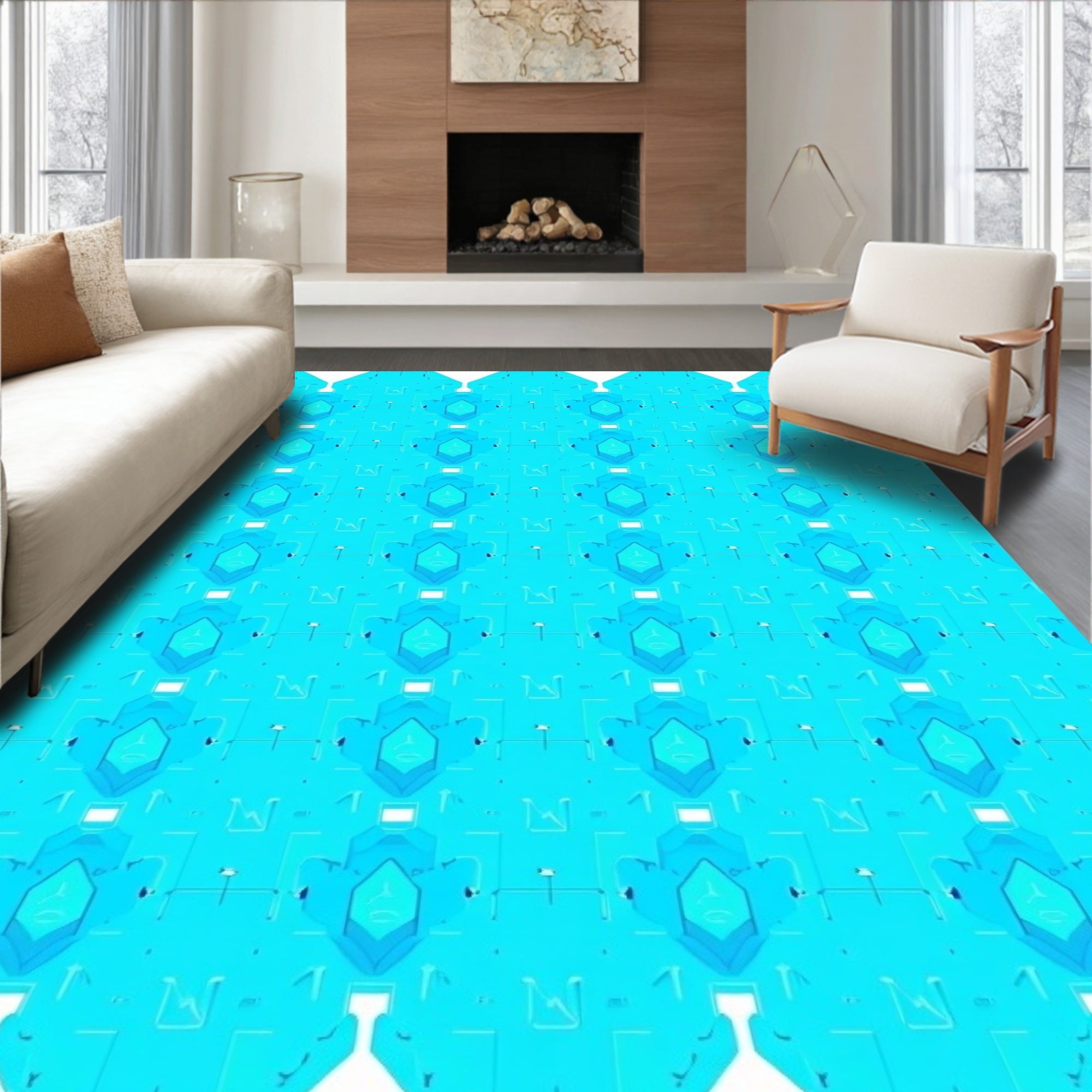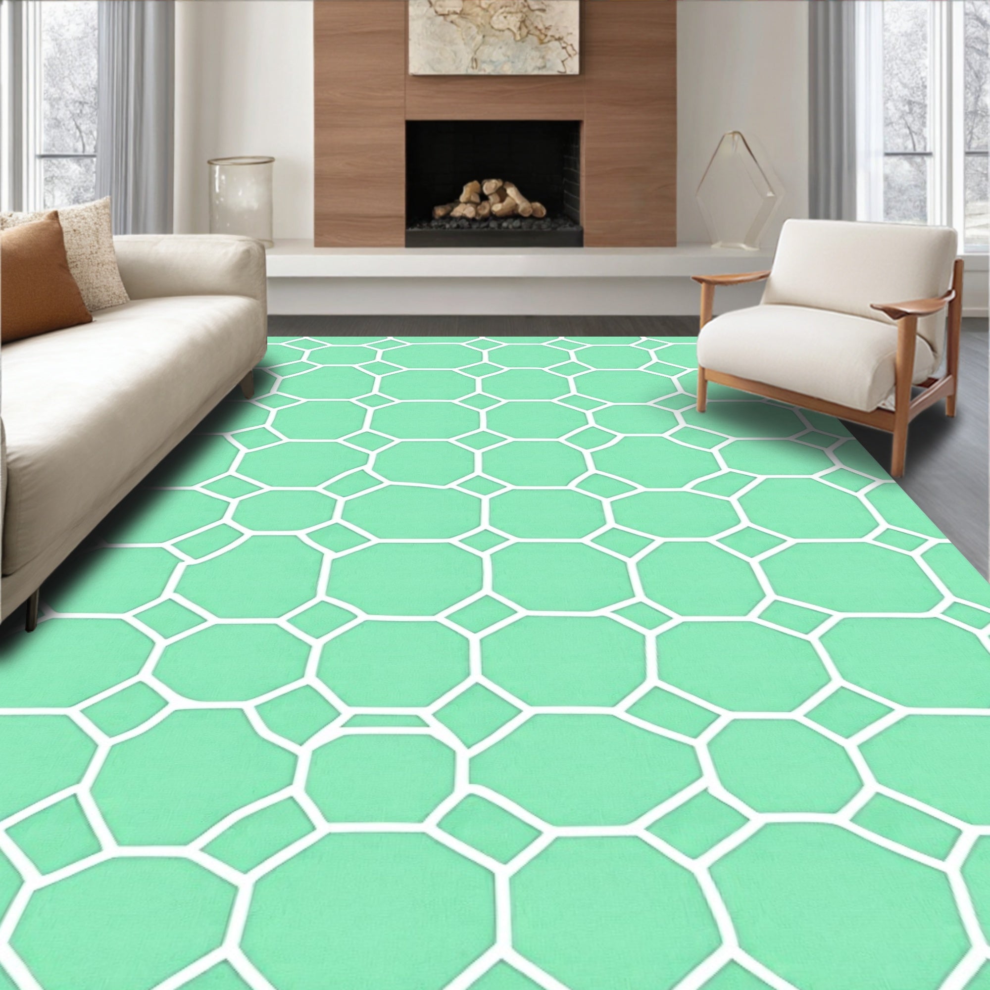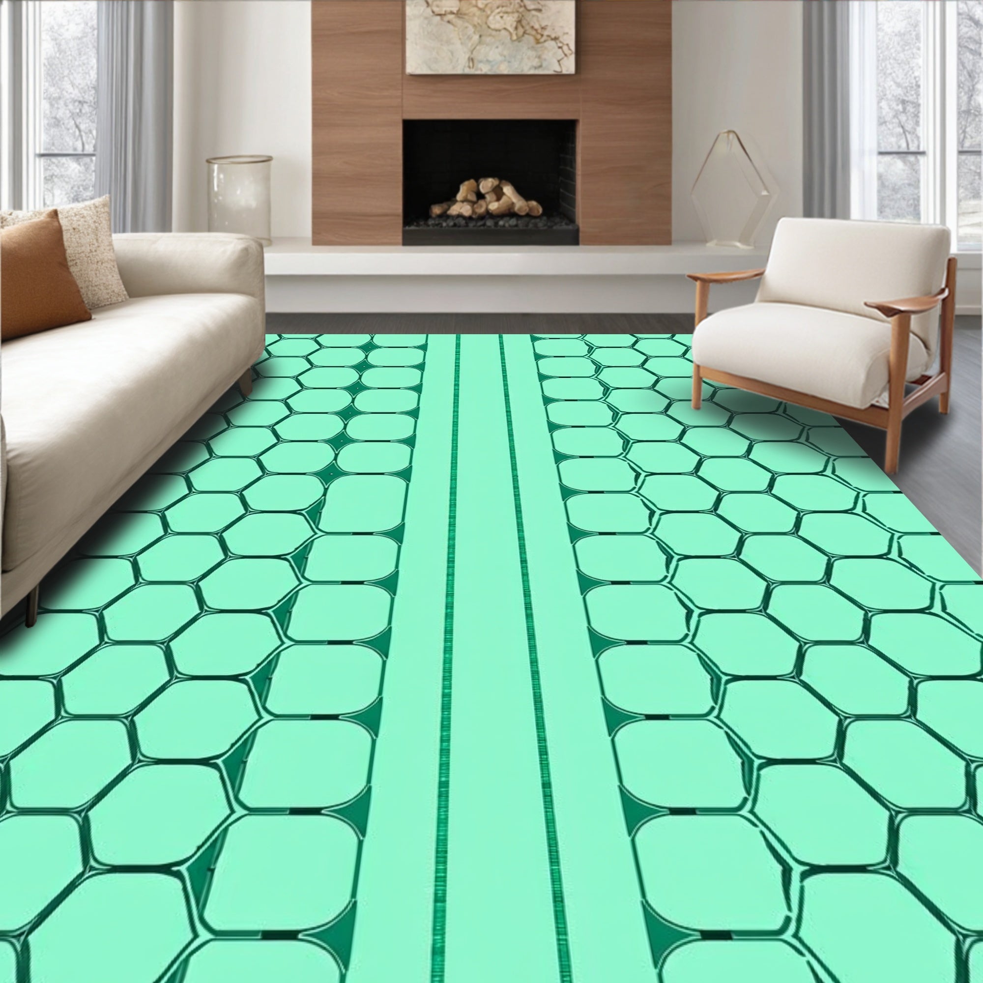 Hexagonal Lattice Contemporary Floor Covering(Beige)