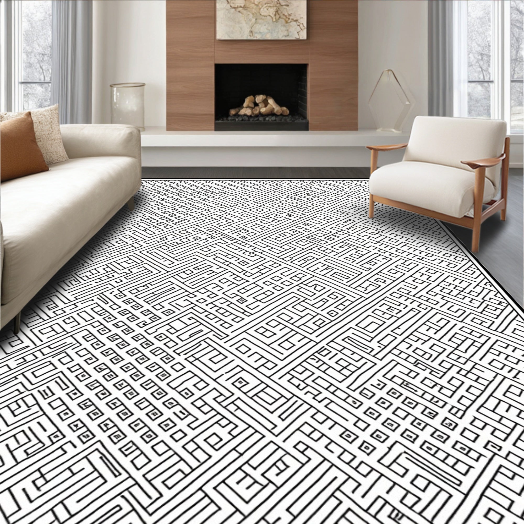 Houndstooth Motif Decorative Covering with Interlocking(Black)