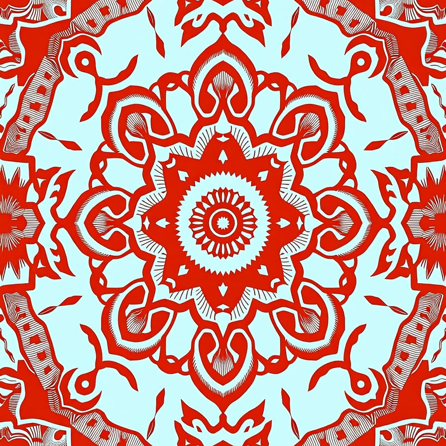 Inspired Mosaic with Radiant Petal Motifs(Red)