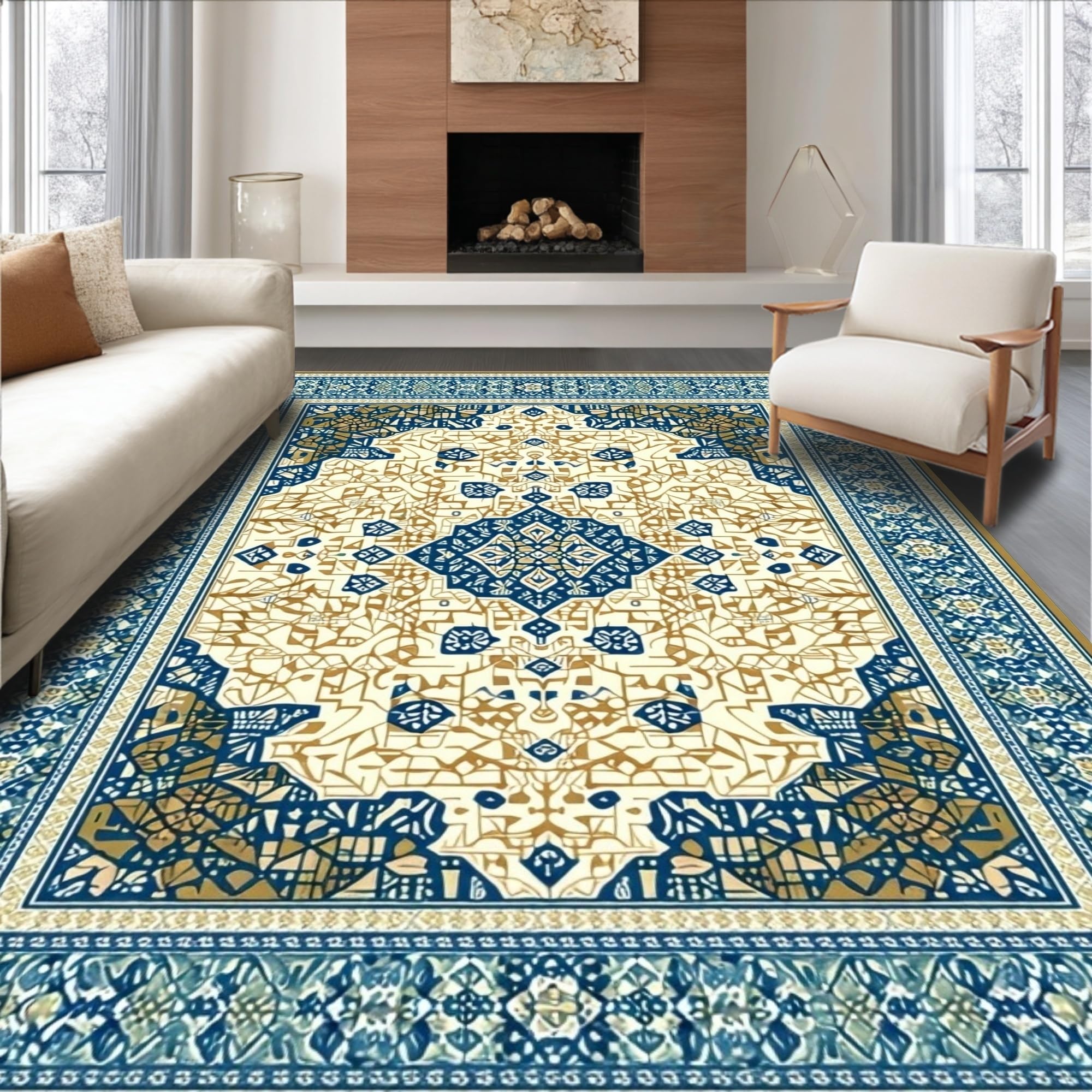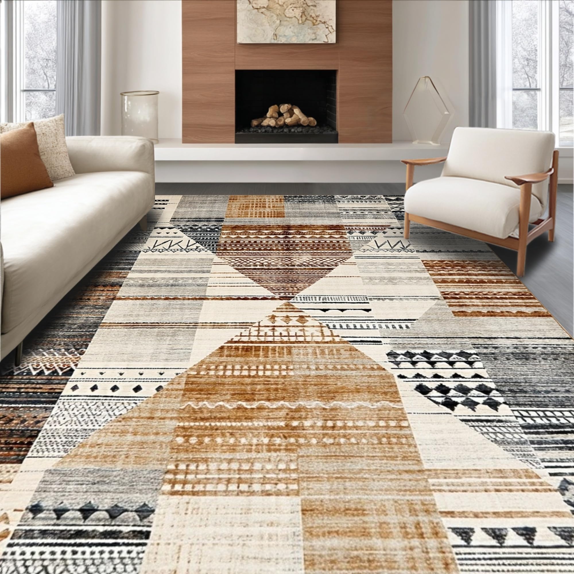 Beige Blue Geometric Patchwork Area Unique Floor Decor(Gray)