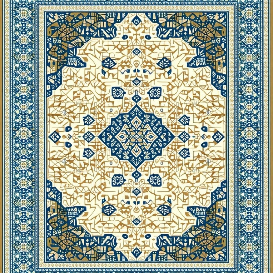Beige Blue Geo Patchwork Area Modern Floor Art for Home(Beige)