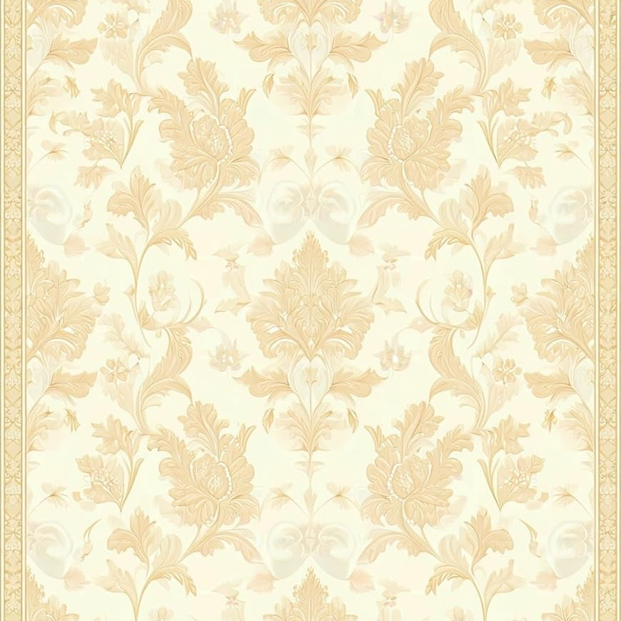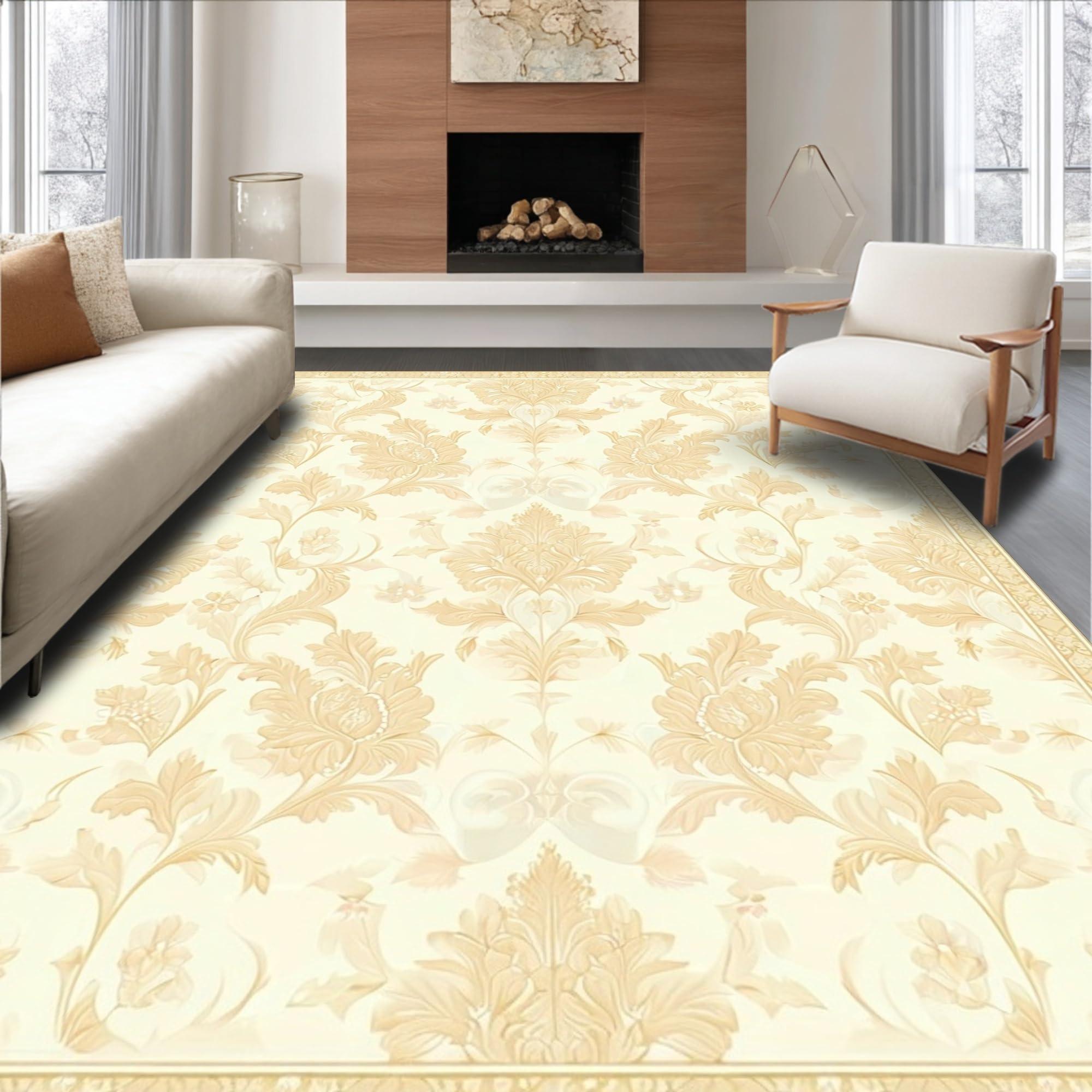 Beige Damask Inspired Area with Fluid Scroll and Hues(Beige)