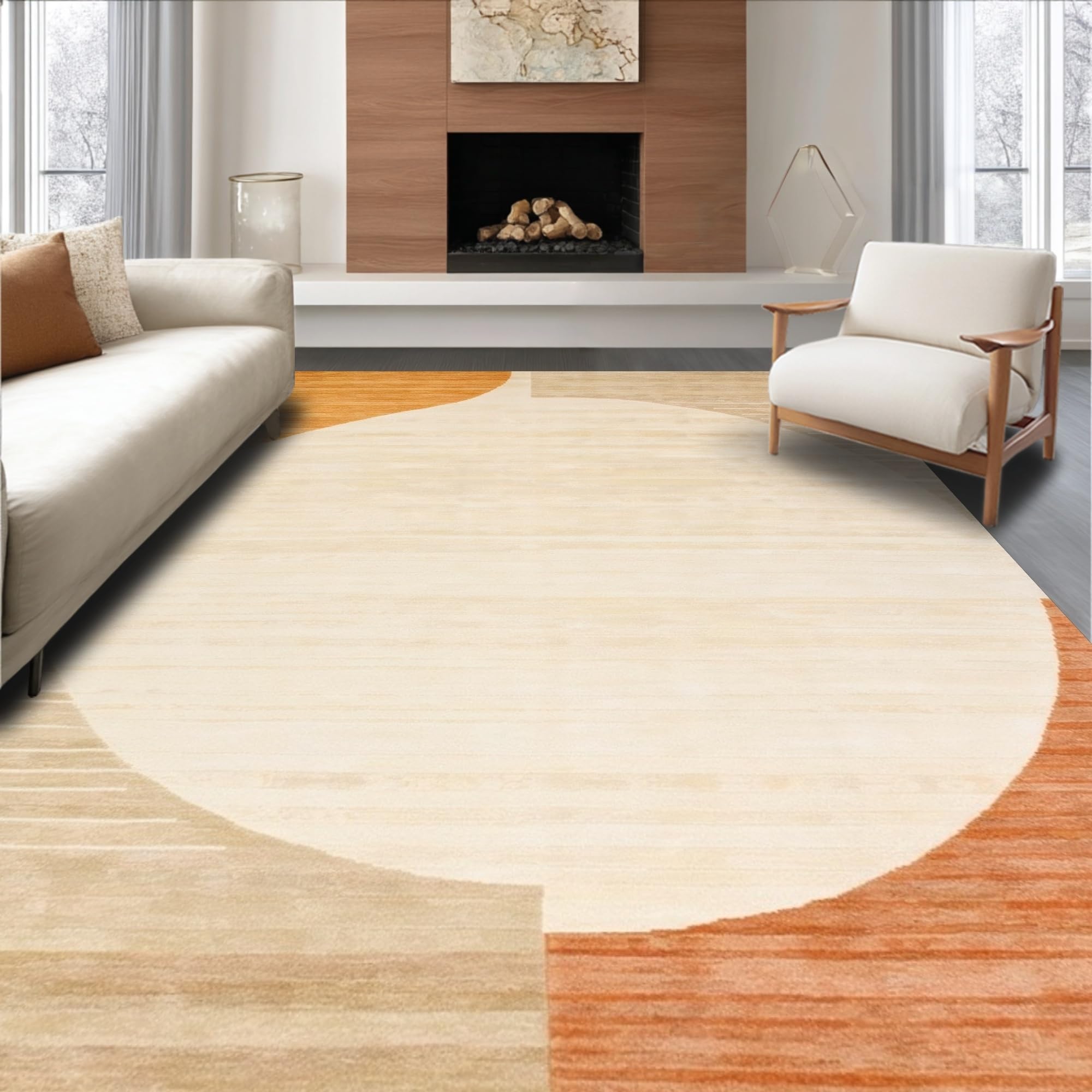 Beige Colorful Abstract Layered Wave Geometric Area(Orange)