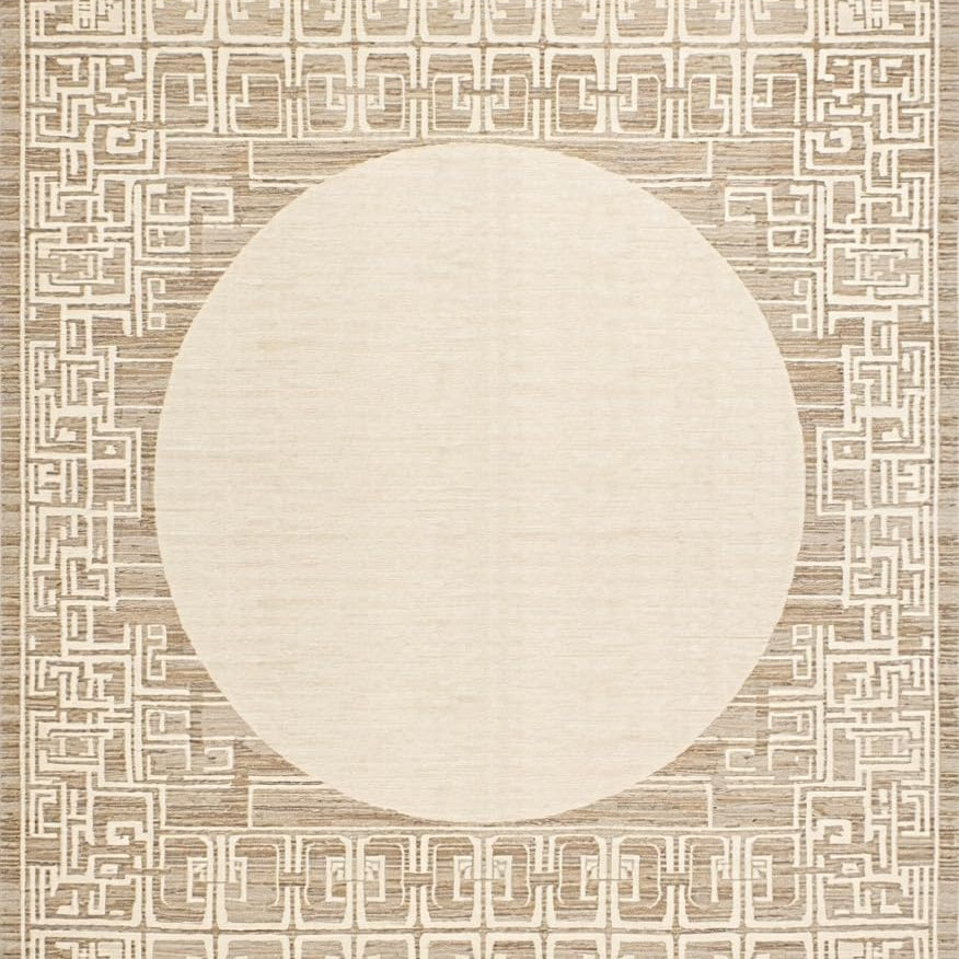 Beige Curved Scallop Area Featuring Interlaced Circular Motifs(Beige)