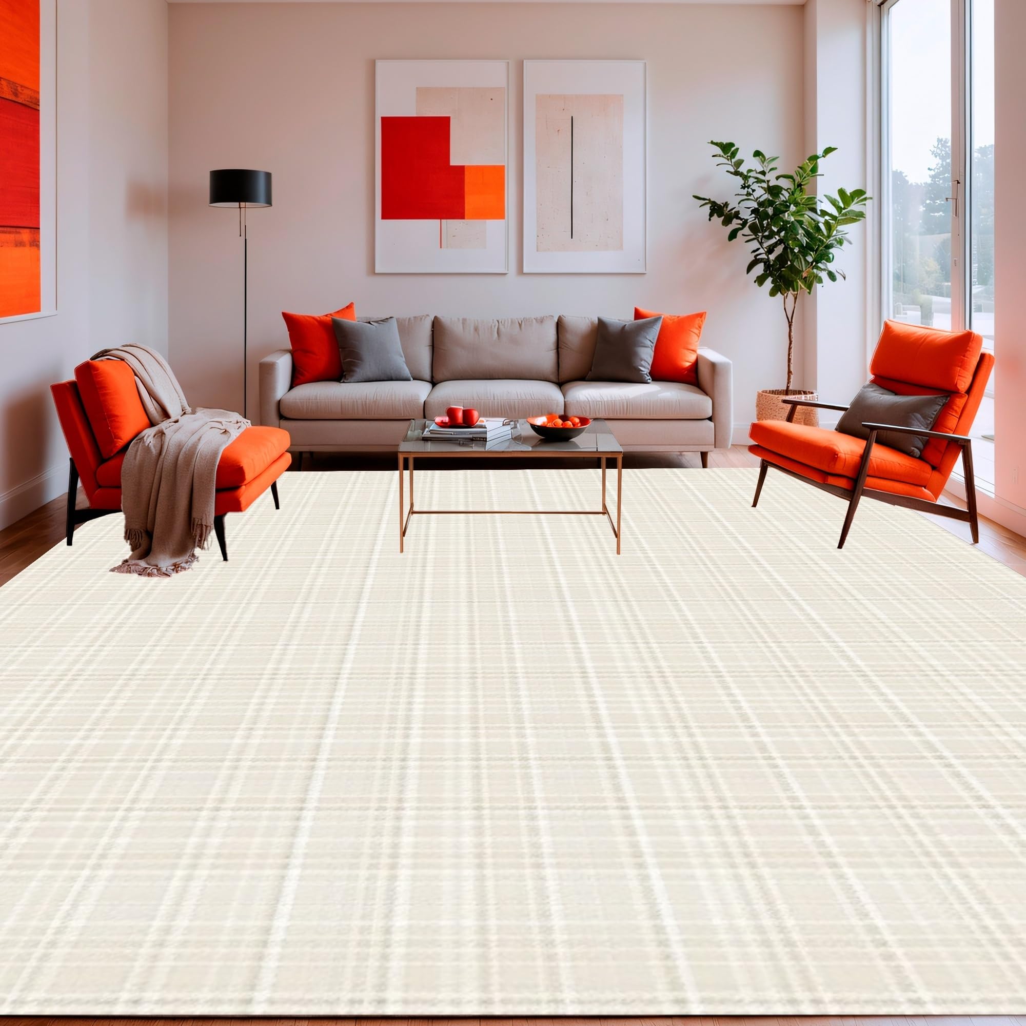 Beige Checkered Modern Farmhouse Plaid Grid Area(Beige)
