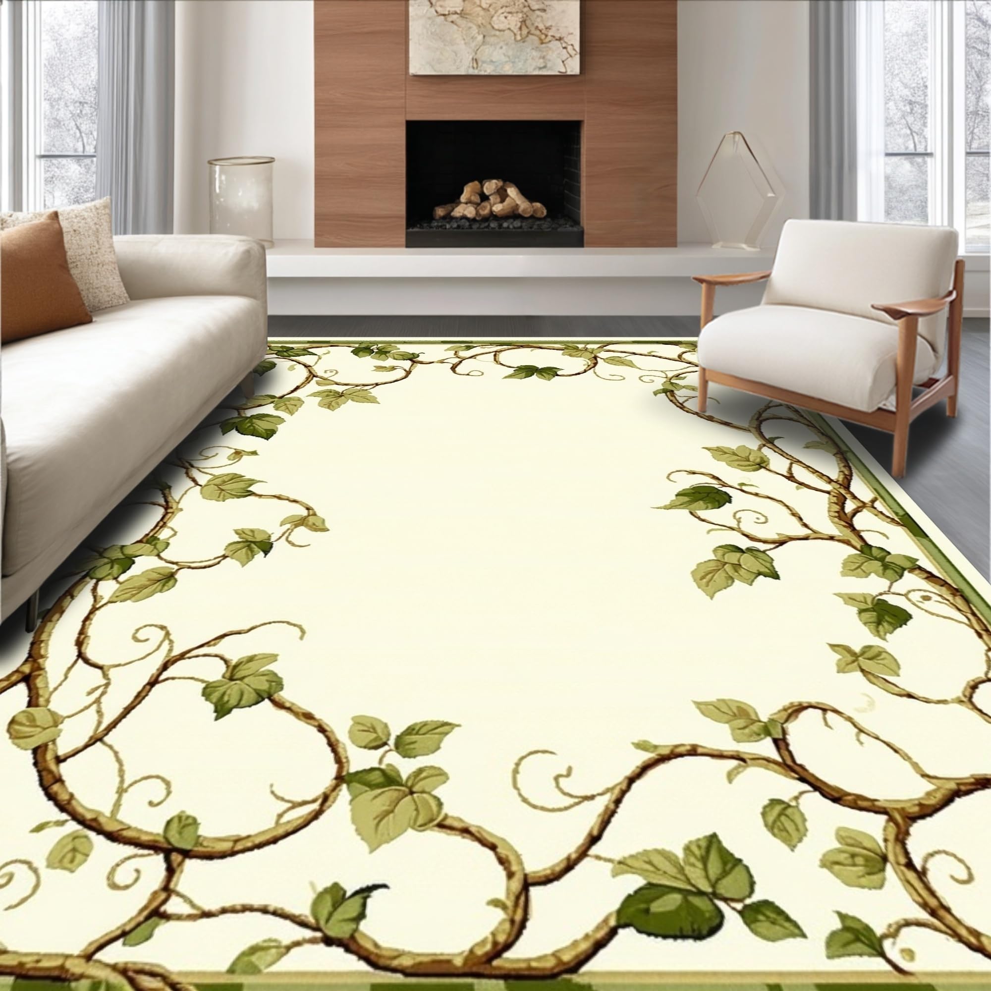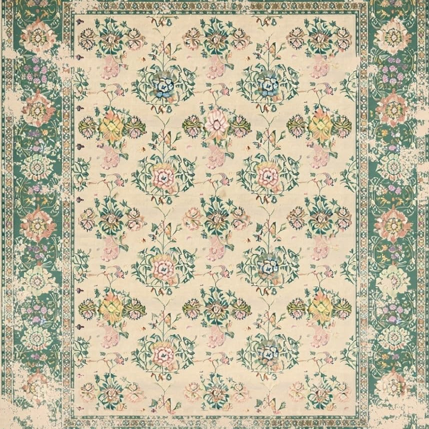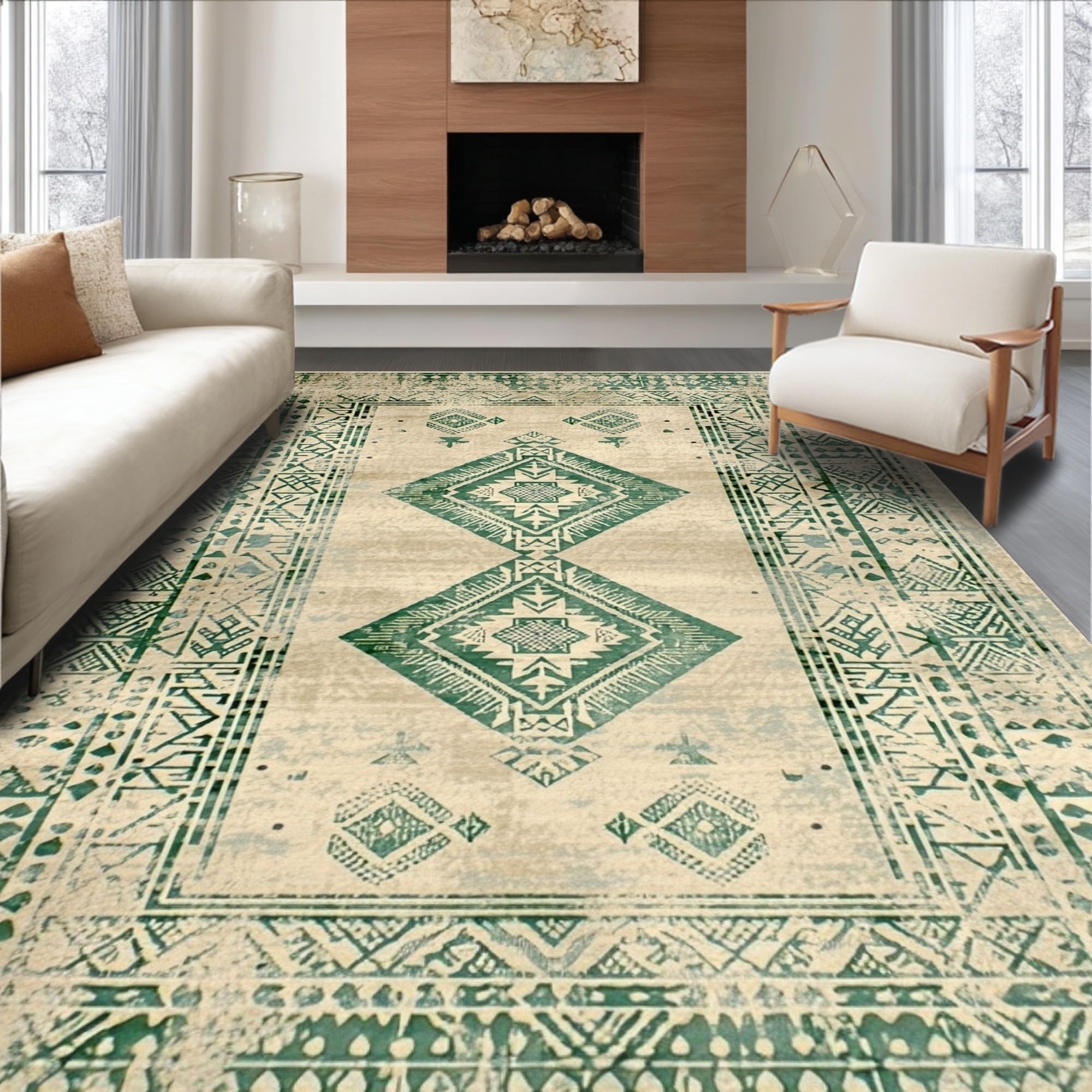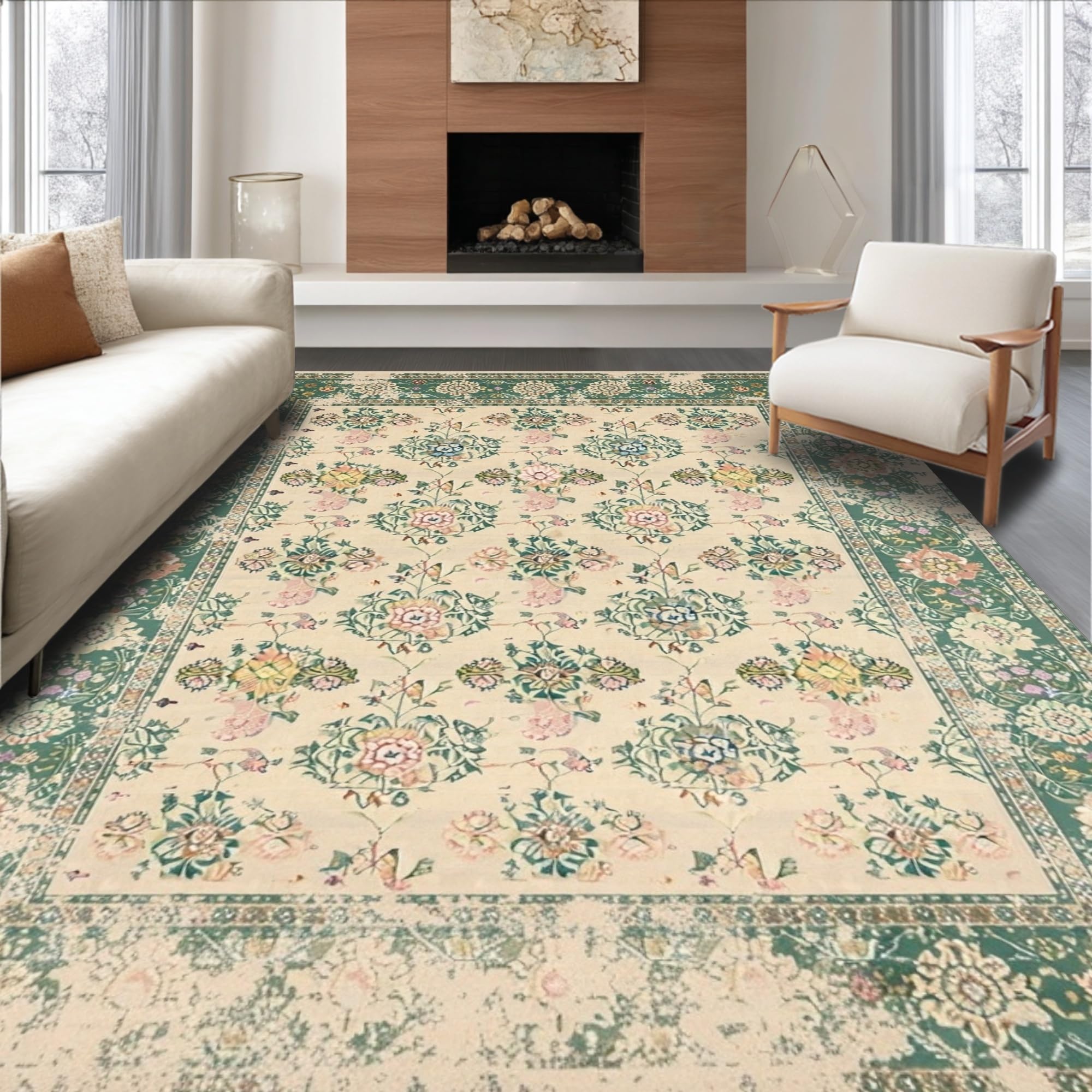 Beige Green Vintage Design Easy Clean Durable Non Shed(Beige)