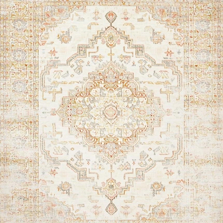 Beige with Classic Medallion and Distressed Finish(Beige)