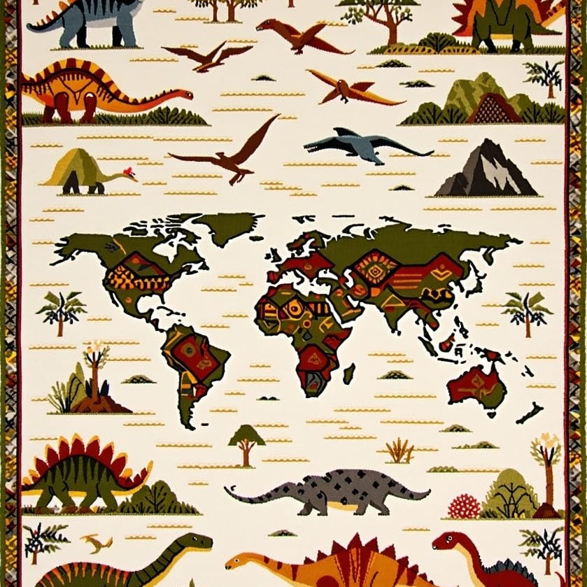 Beige with Fun Dinosaur Motifs and Colorful Global Map(Beige)