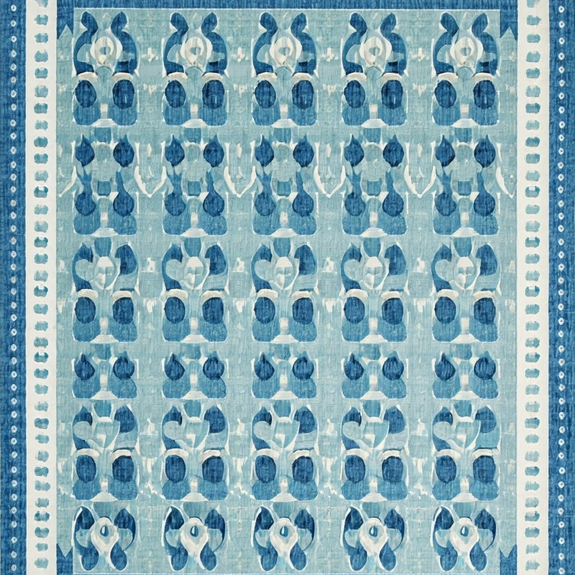 Blue and Beige Vintage Floral Medallion with Delicate Details(Ivory)