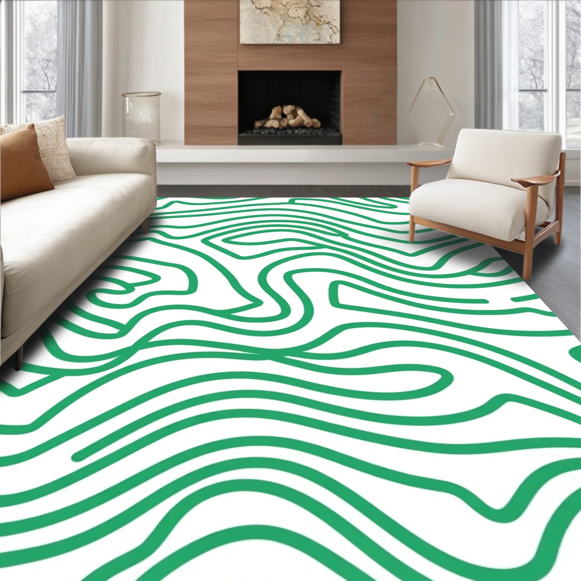 Abstract Rippled Wave Motif Modern Design(Green)