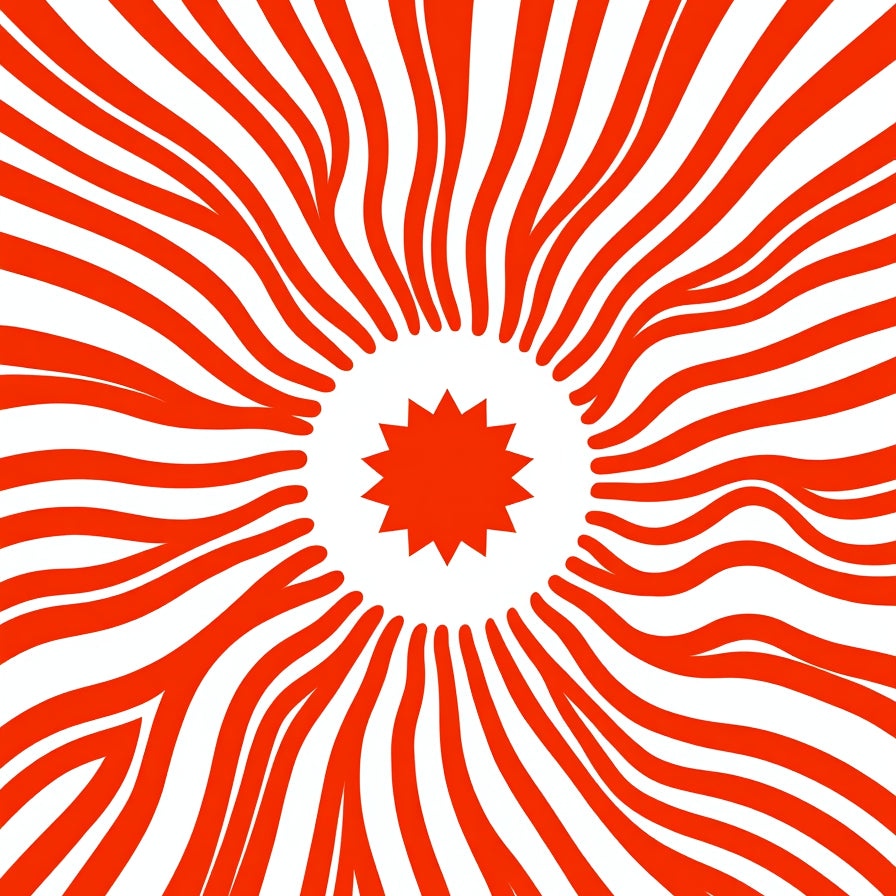 Abstract Sunburst with Radiating Shapes and Swirls(Red)