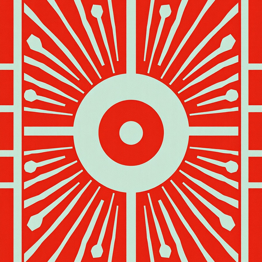 Abstract Sunburst Medallion with Motif and Southwest Flair(Red)