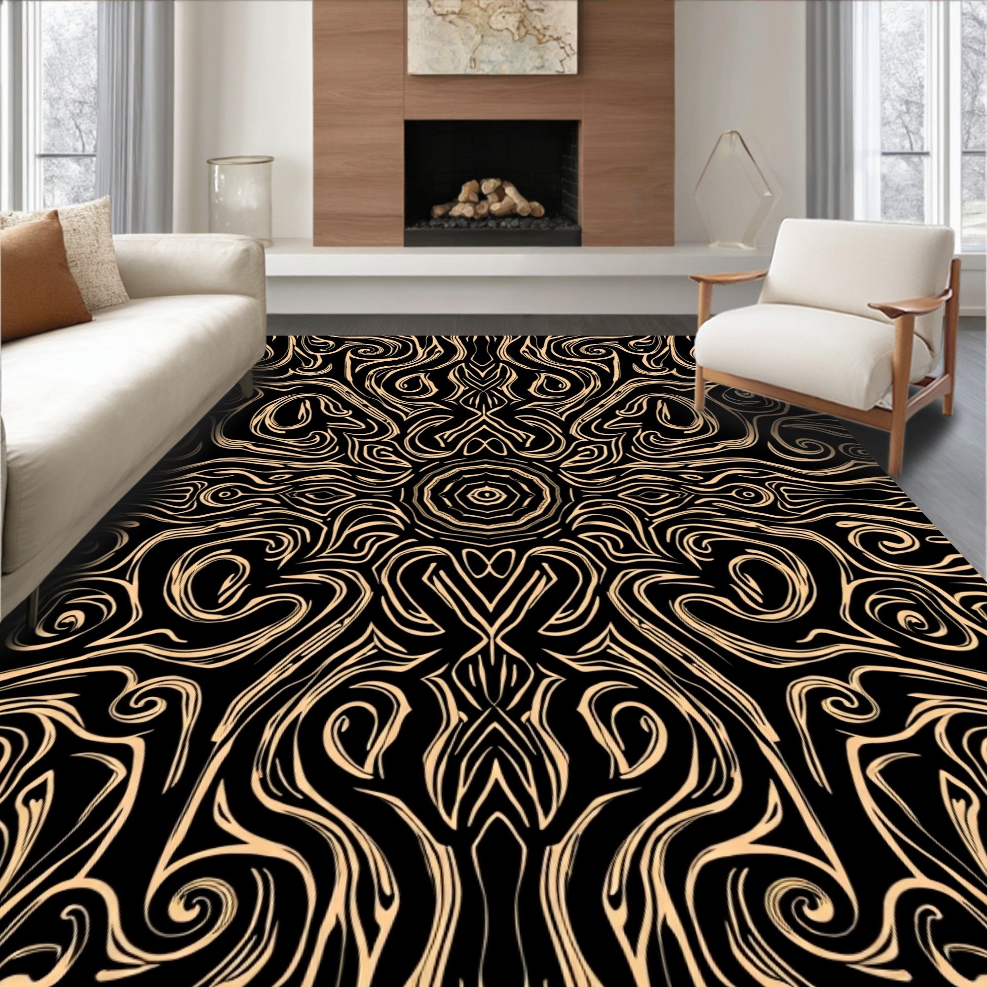 Abstract Swirl Spiral Design Pet Friendly Floor(Black)