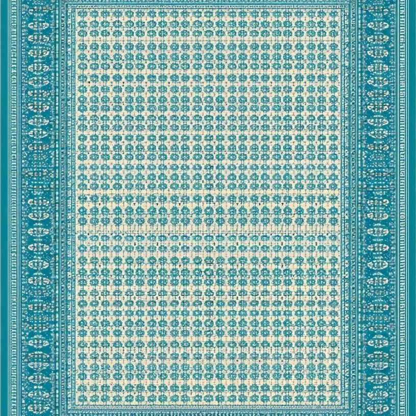 Aqua White Farmhouse Chic Area Rug Geometric Diamond Pattern Patio Carpet(Blue)