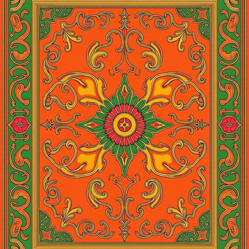 Arabesque Medallion Design Colorful Anti Slip(Orange)