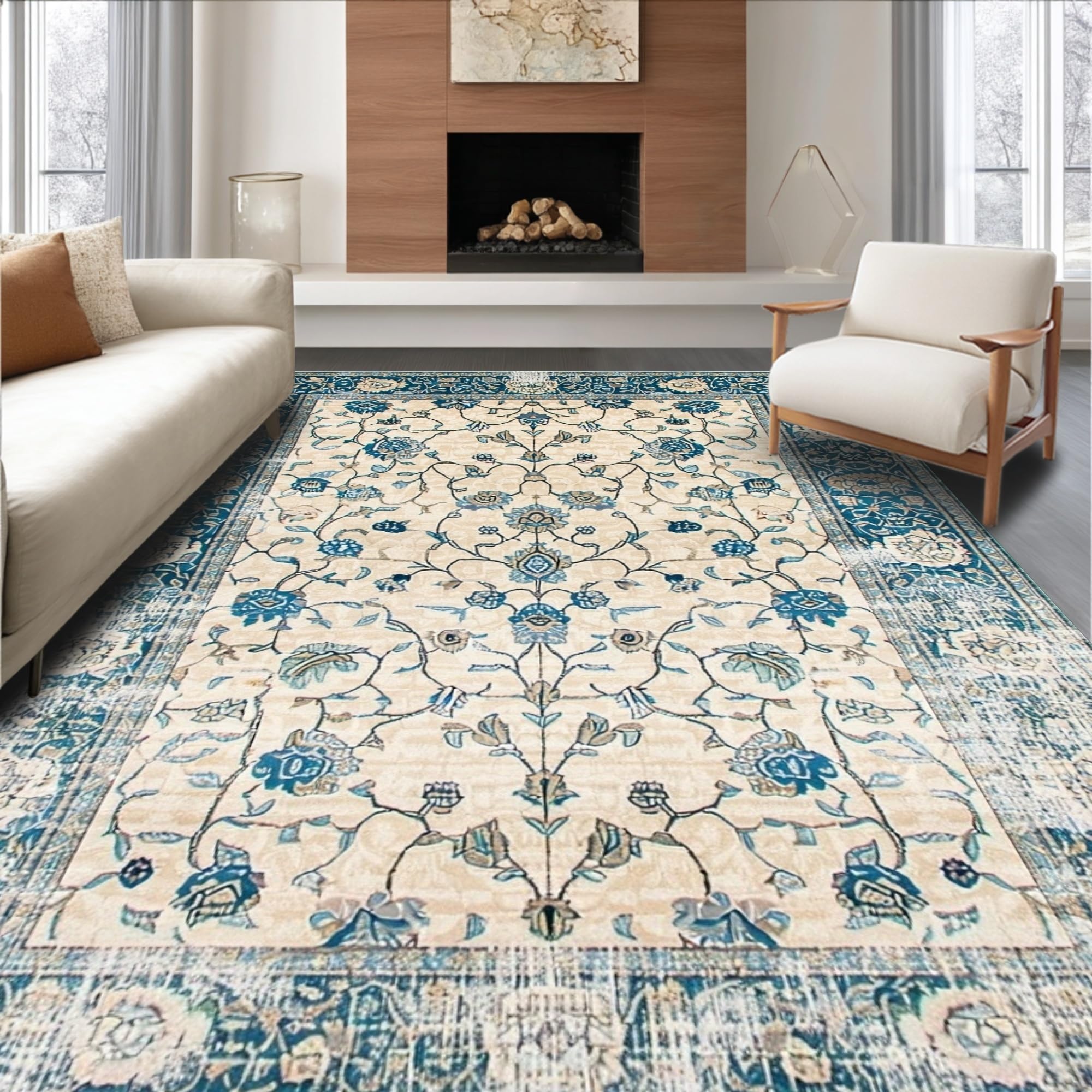 Area Classic Ornamental Border Elegant Non Slip Timeless Design(Beige)