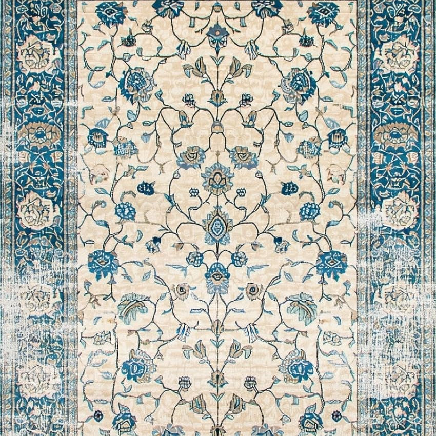 Area Cream Beige with Romantic Floral Design(Beige)