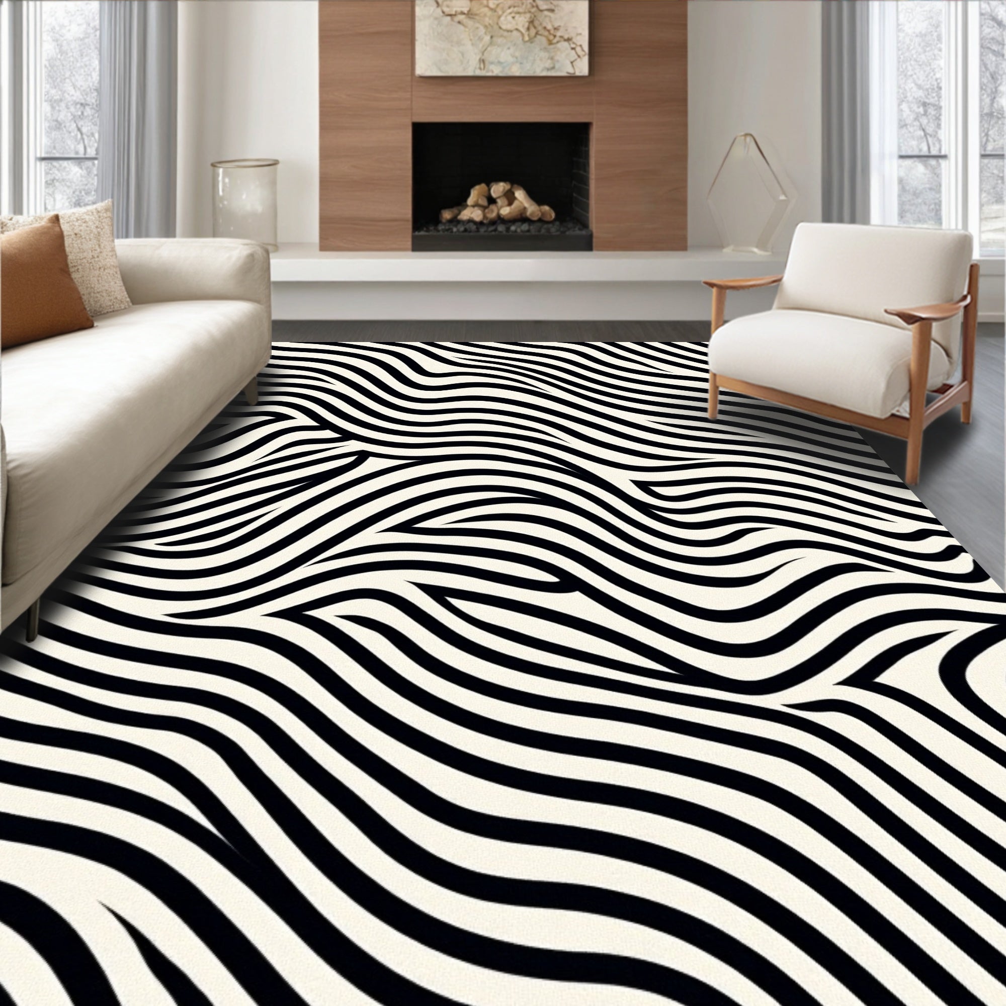 Abstract Zebra Stripe Waves with Flowing Curved Lines Contemporary Style(Black)