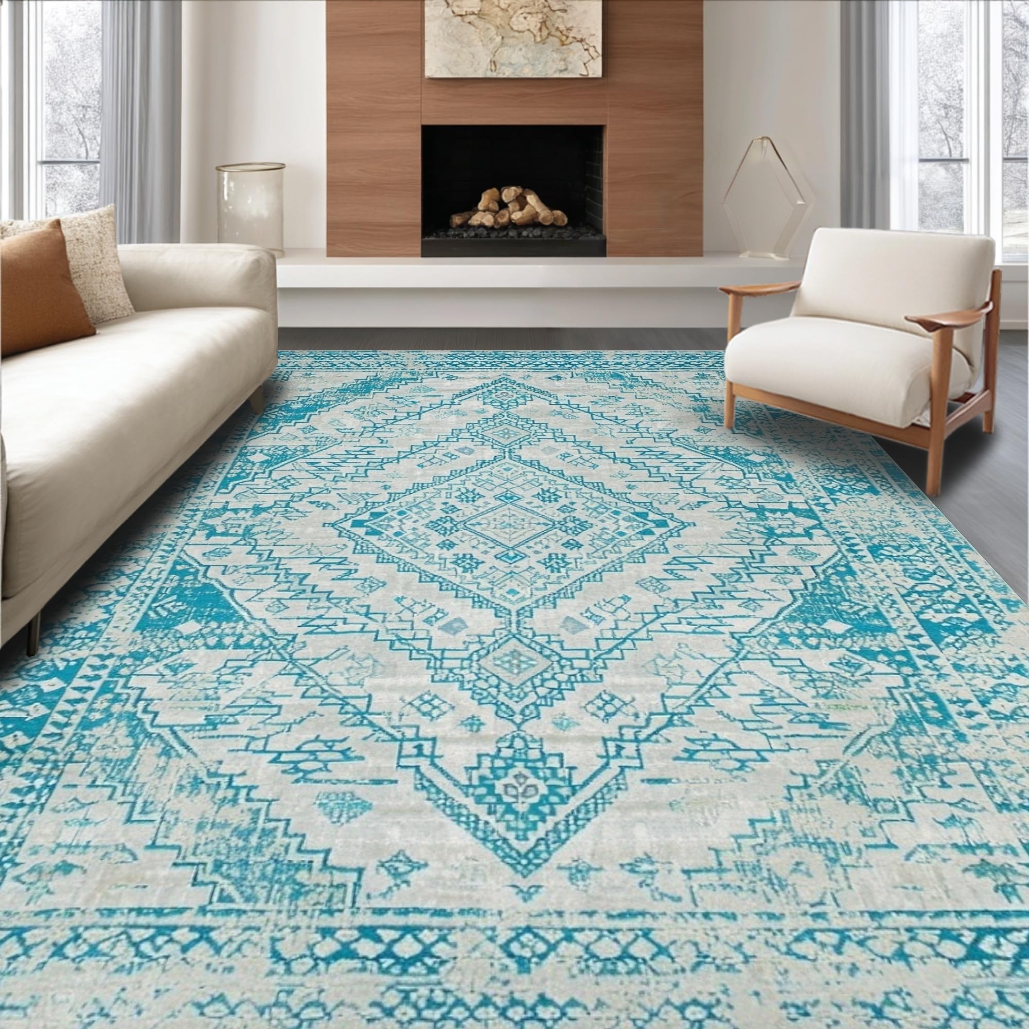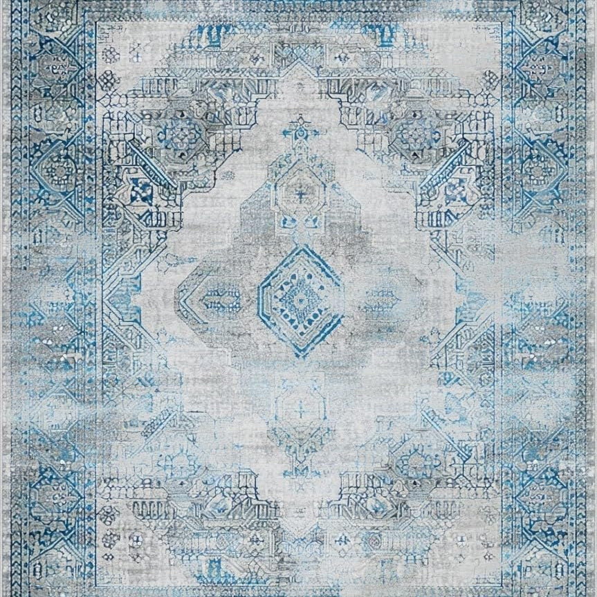 Artful Blue and Beige Ombre Area with Vintage Distressed Aesthetic(Blue)