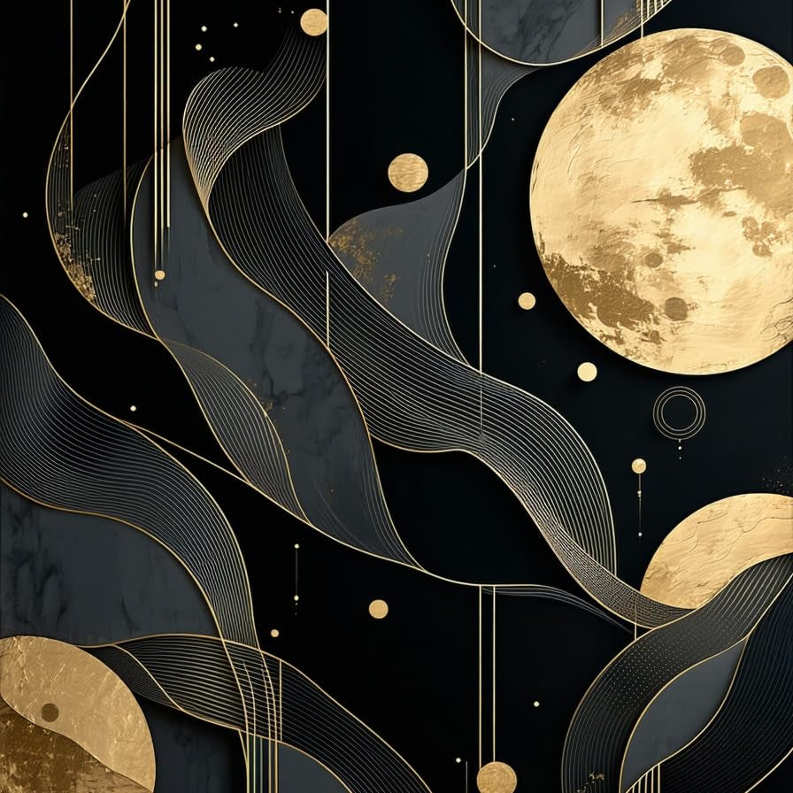 Artful Black Gold Geometric Composition(Black)