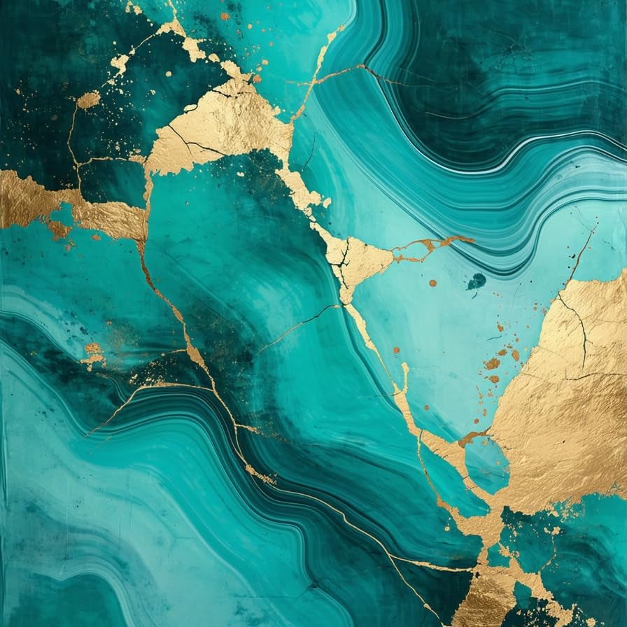 Artful Gold Accented Teal Splash(Green)