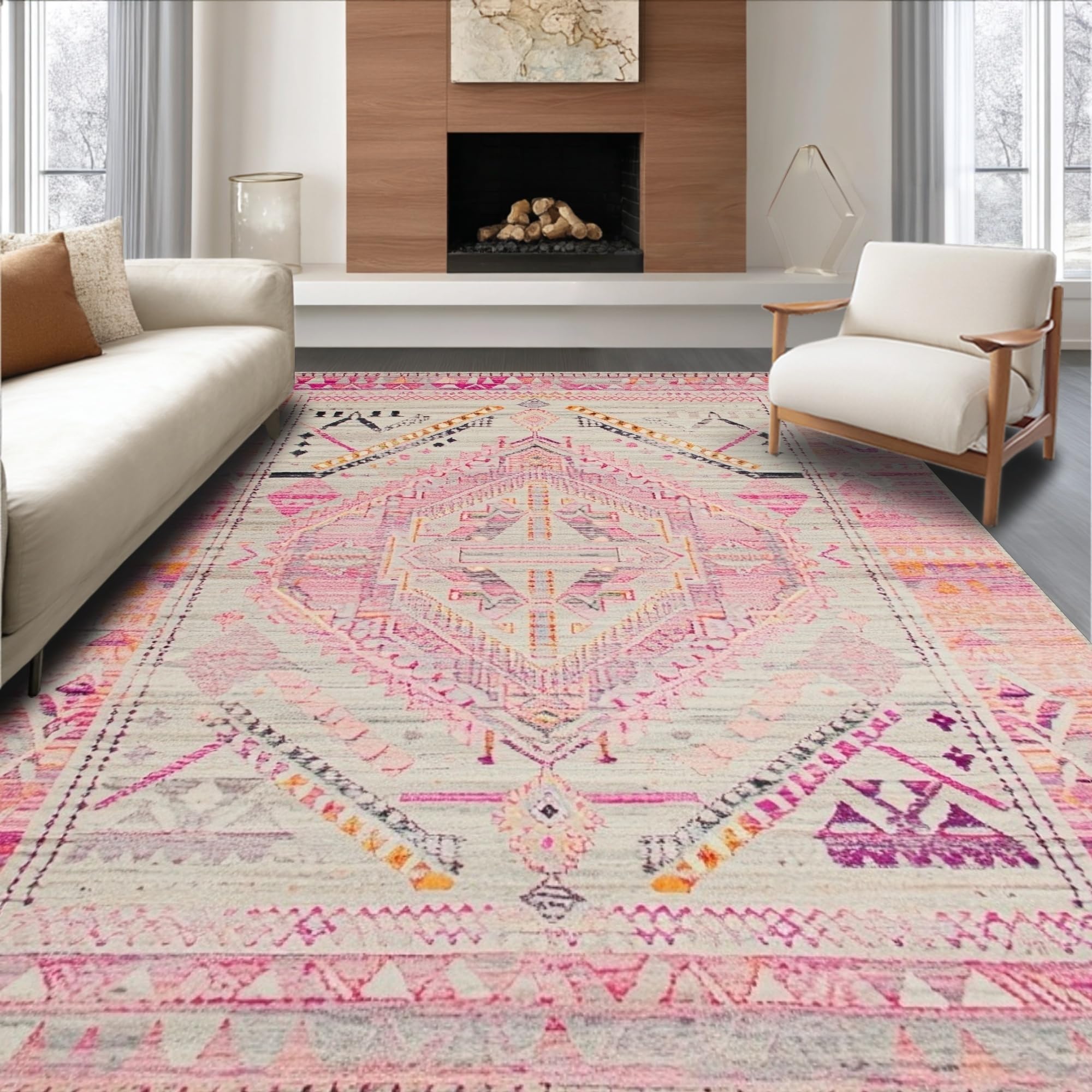 Artisan Boho Diamond Trellis Area with Creamy Neutral Layers(Beige)