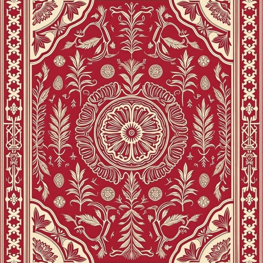 Artisan Crafted Vintage Botanical Print(Red)