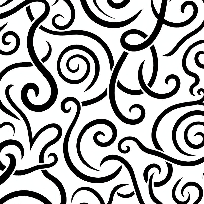 Abstract Brushstroke Artsy Swirl Wavy Expressive Decorative Accent(Black)