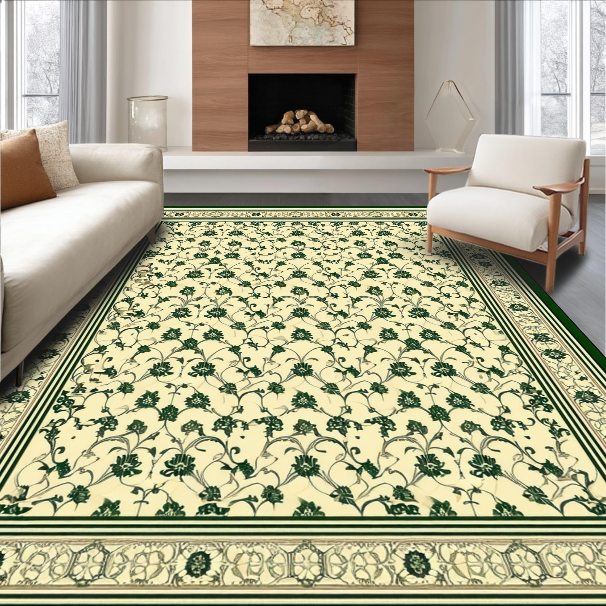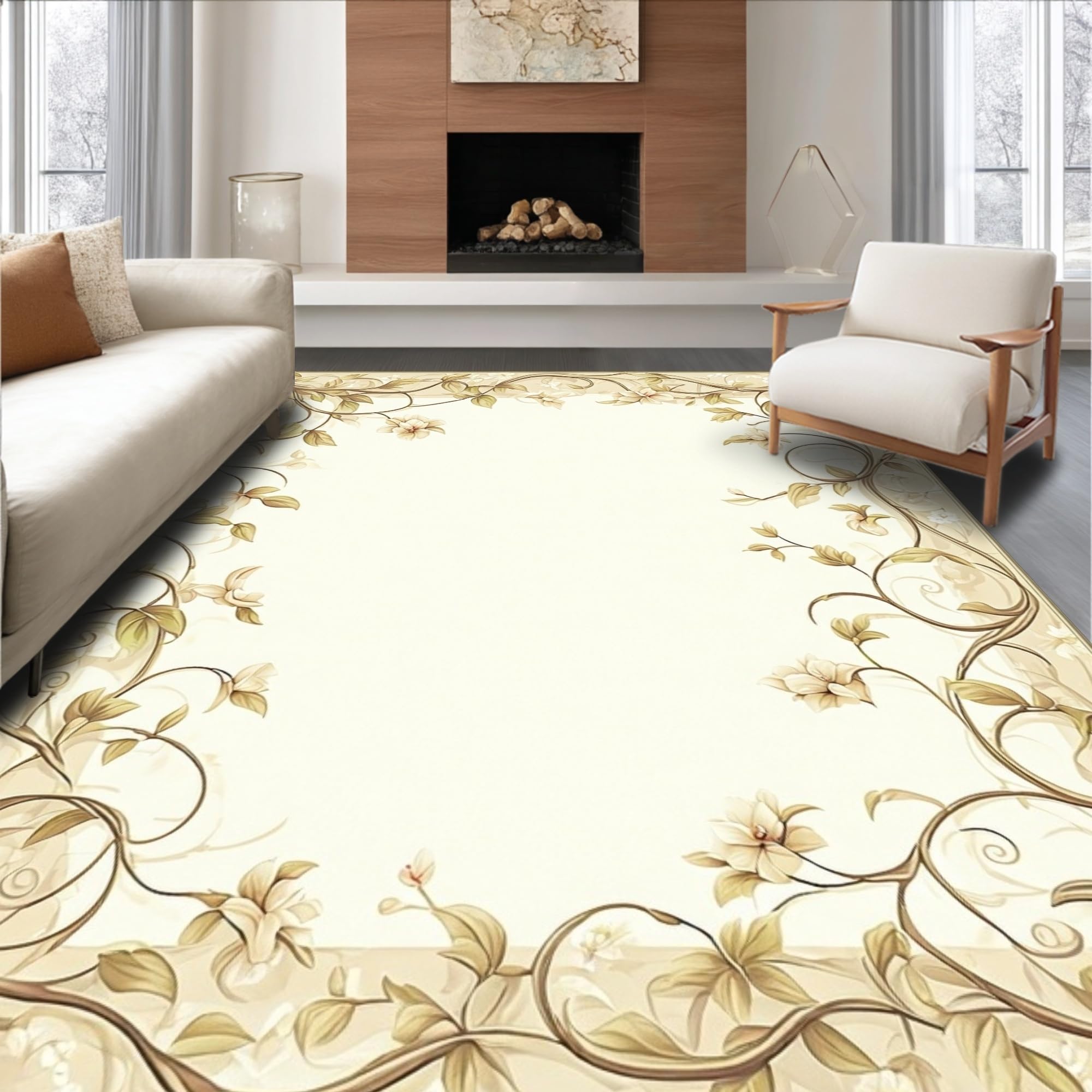 Artisan Scrollwork Area Elegant Border Botanical Accent Design(Beige)
