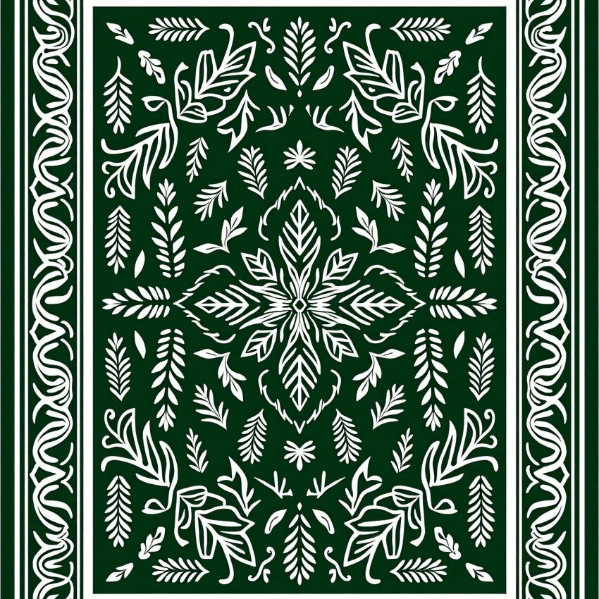 Artisan Snowy Pinecone Mosaic with Whimsical Leaf Motifs(Green)