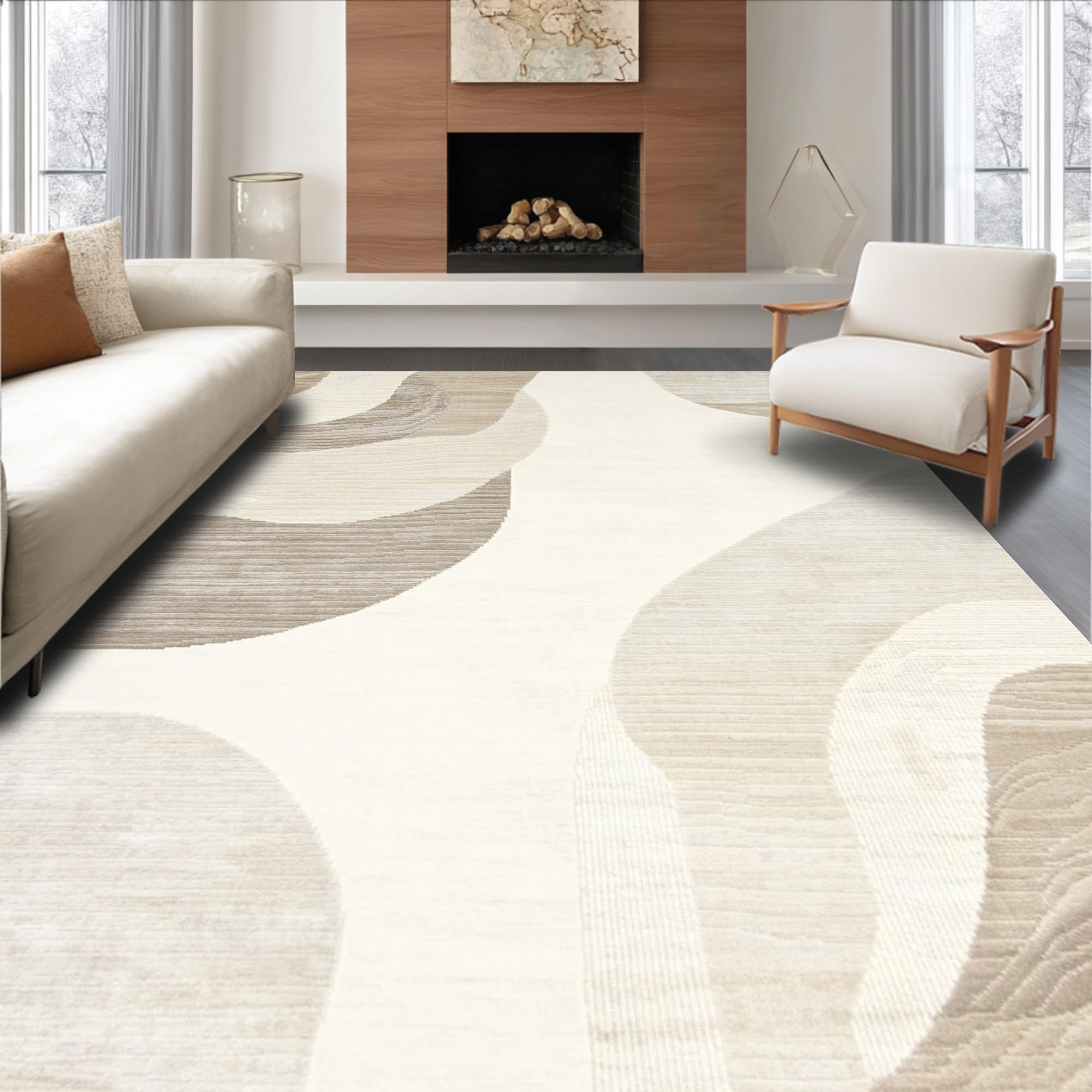 Artisan Weave Area Ivory & Beige Abstract Swirls Design(Beige)