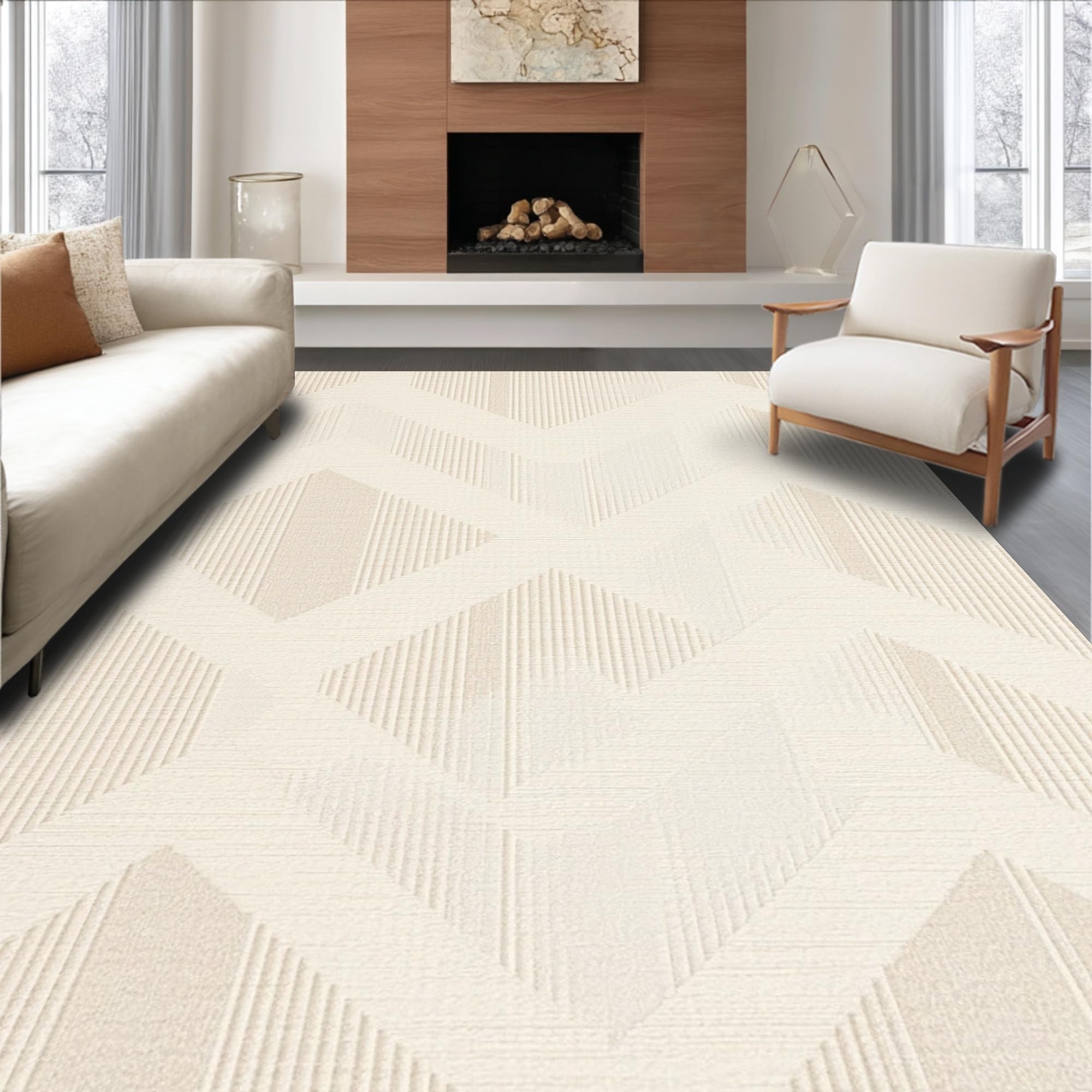 Artisan Woven Area with Minimalist Chevron Lines and Subtle Earth Motifs(Beige)