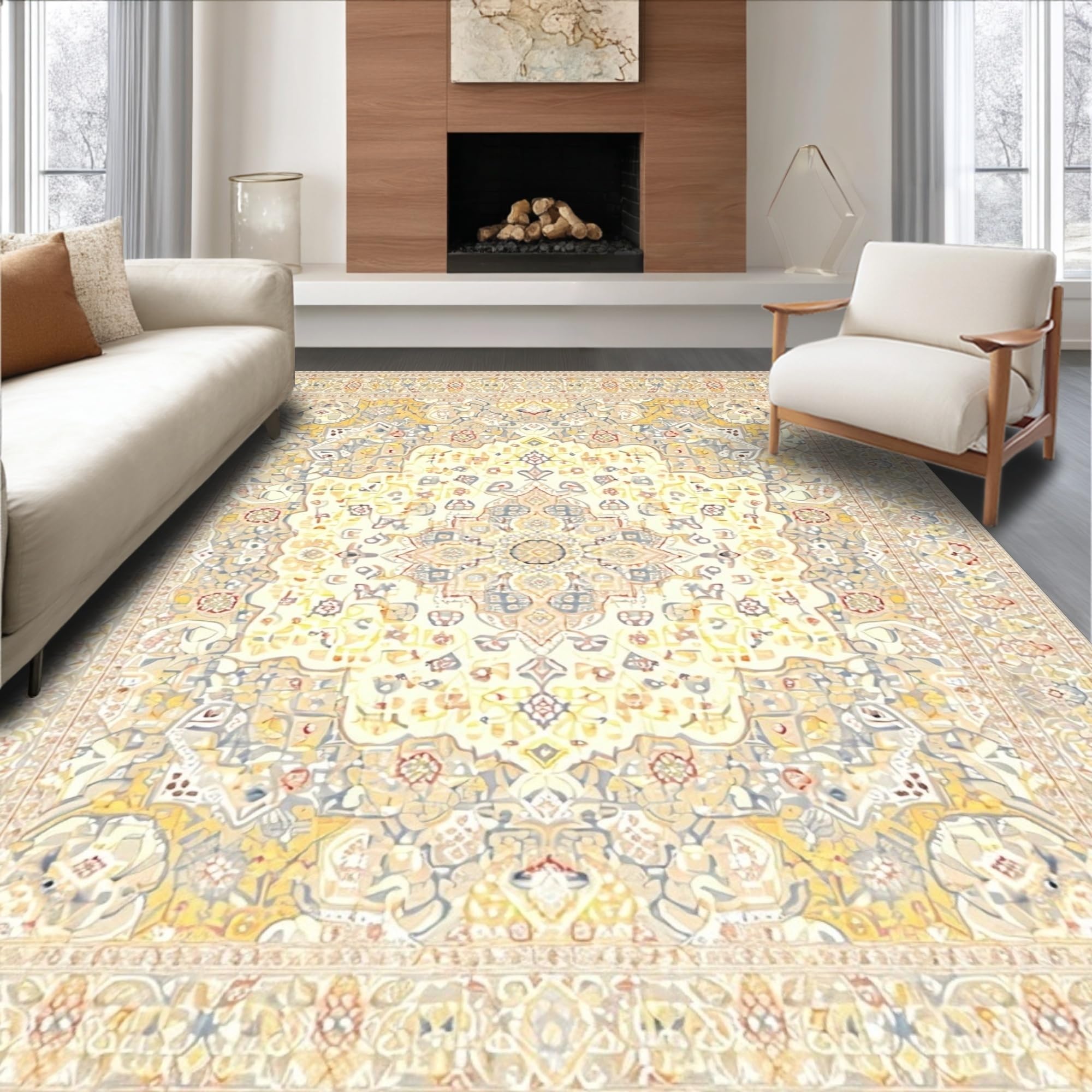Artisanal Beige Geometric Medallion Floor Covering(Beige)