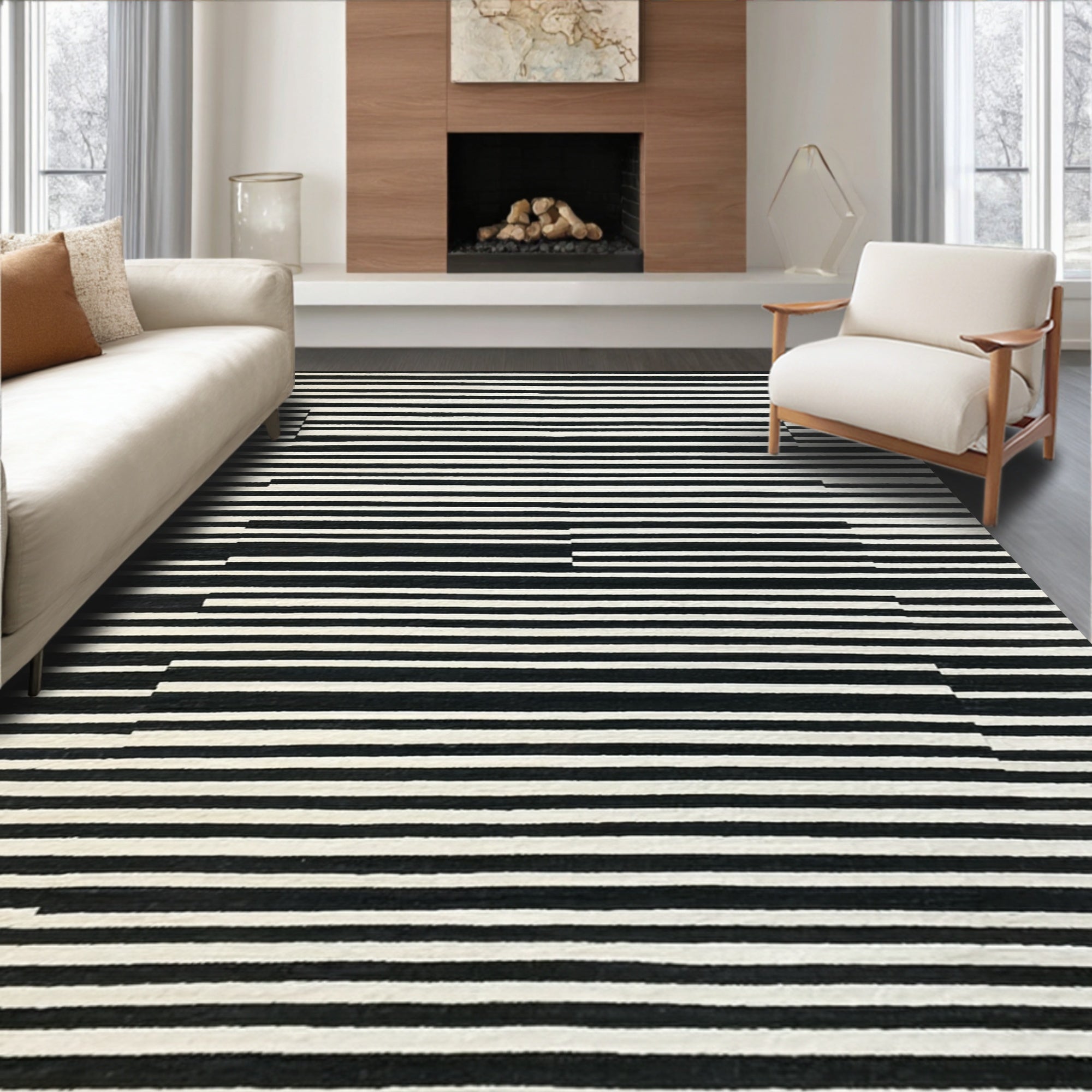Artisan Woven Contrasting Striped For Chic Layered Entryway Decor(Black)