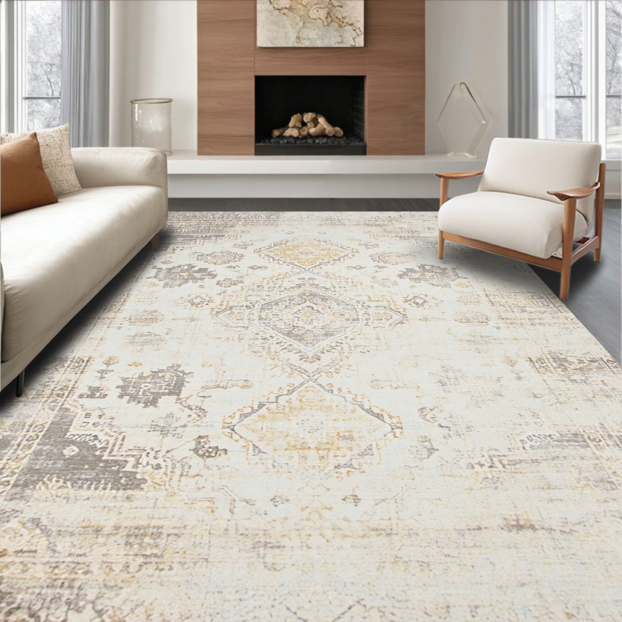 Elegant Area with Water Resistant Design and Non Slip Backing(Beige)