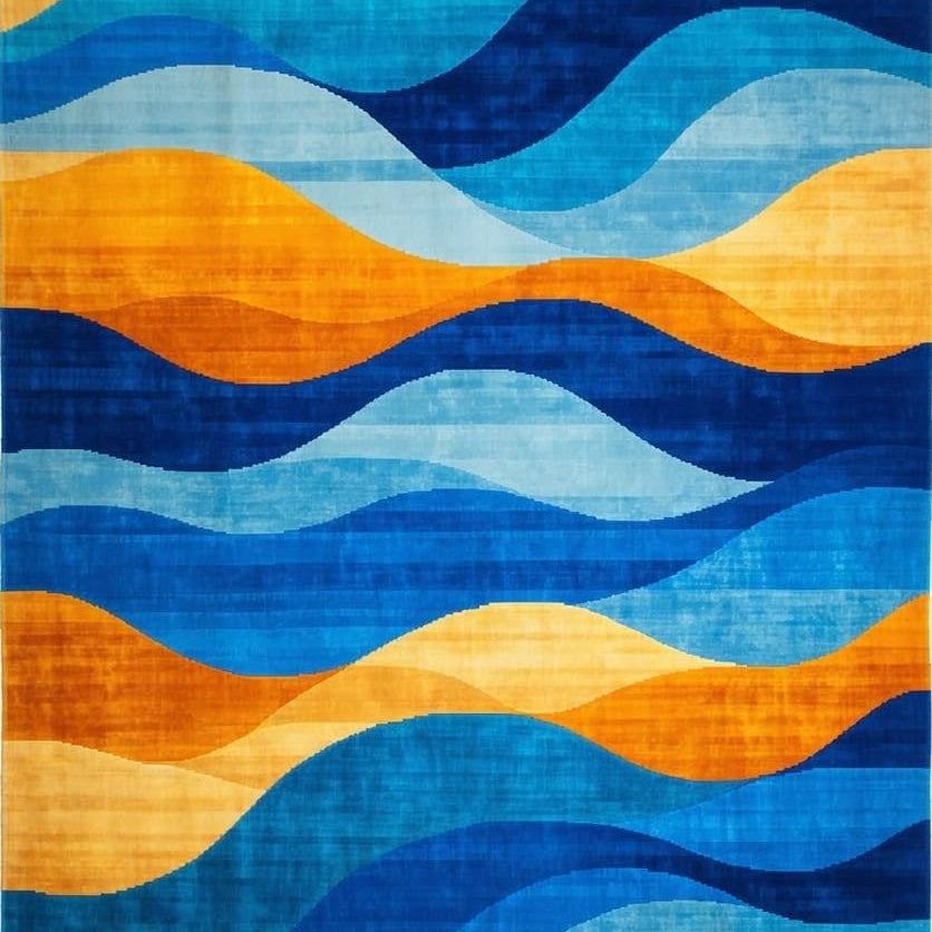 Artistic Area Featuring Enchanting Blue and Orange Waves Design(Blue)