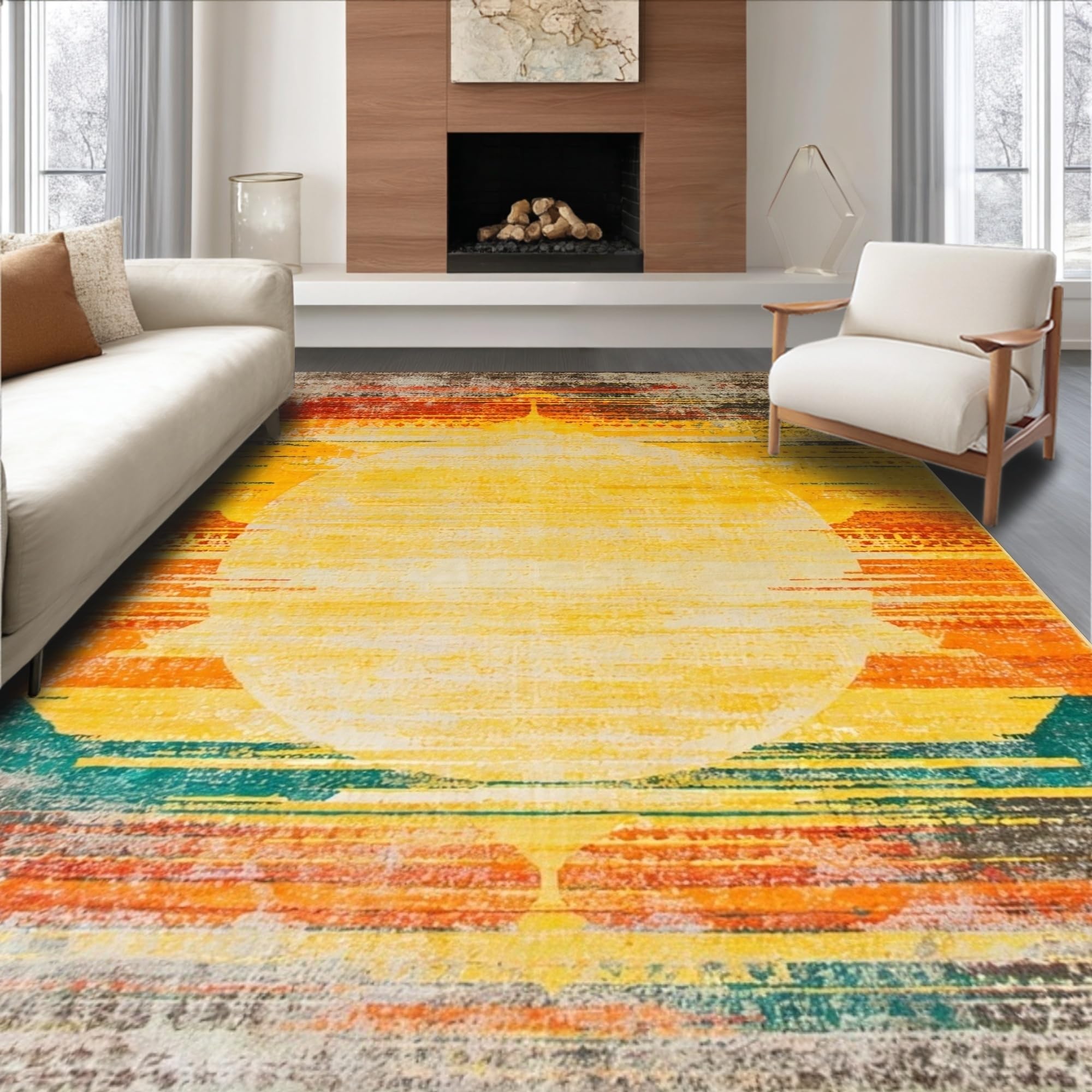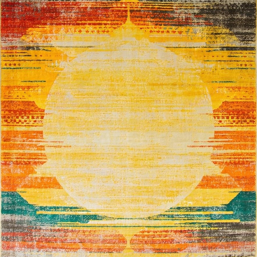 Artistic Area Abstract Geometric Design in Beige and Tangerine(Beige)