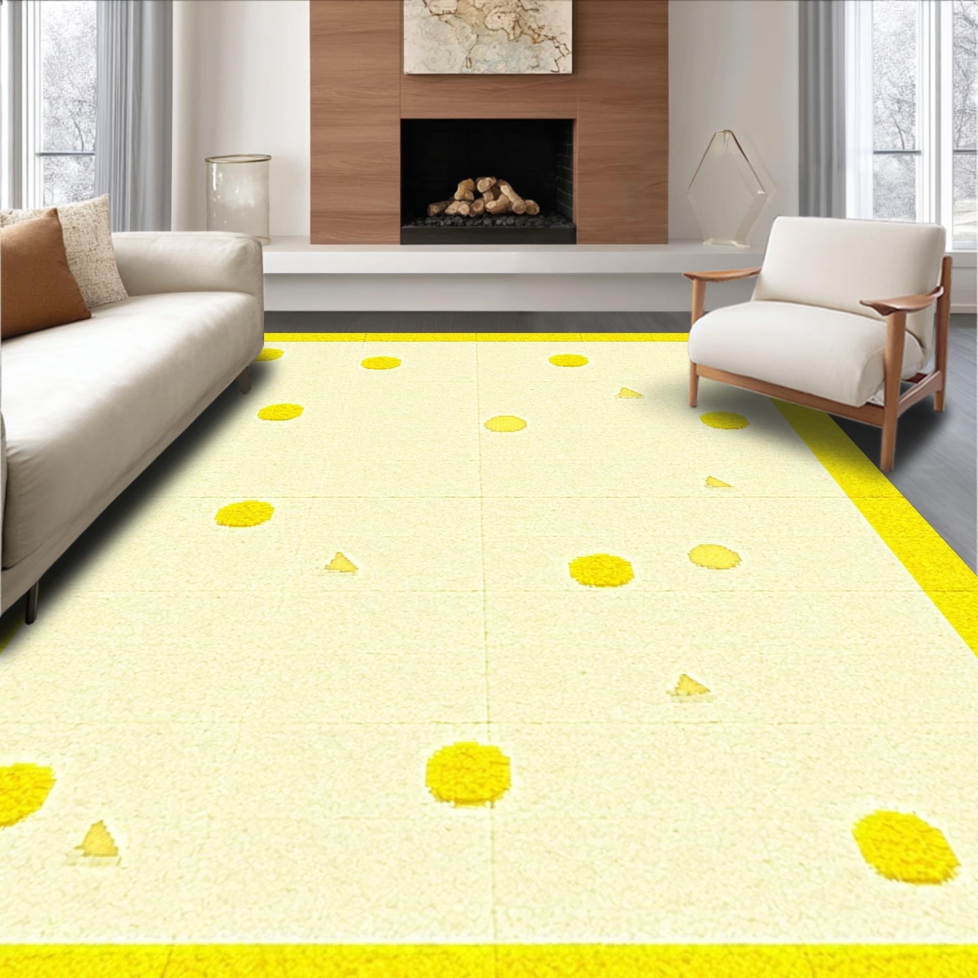 Artistic Boho Area with Rich Beige and Colorful Geometric Elements(Yellow)