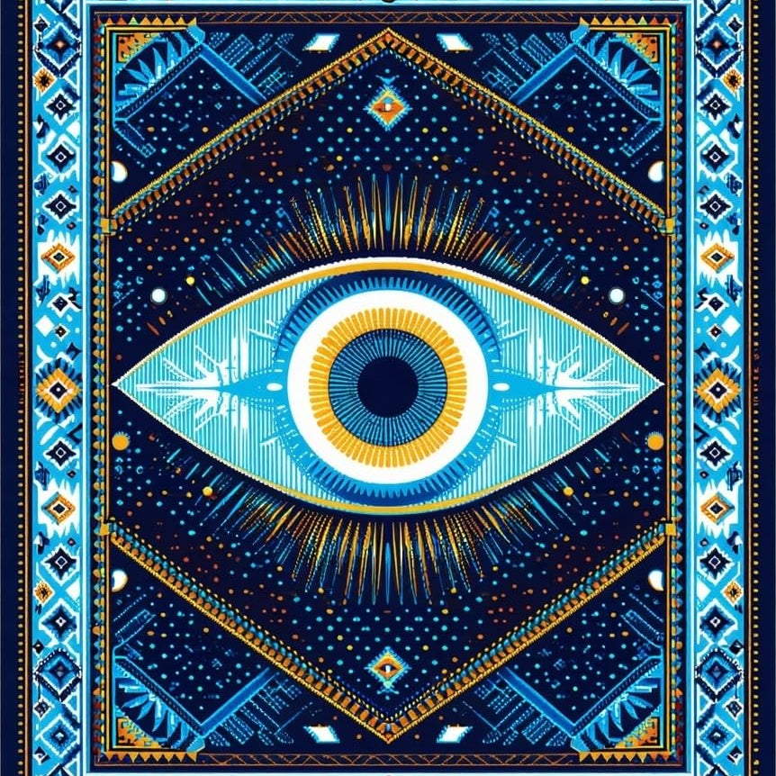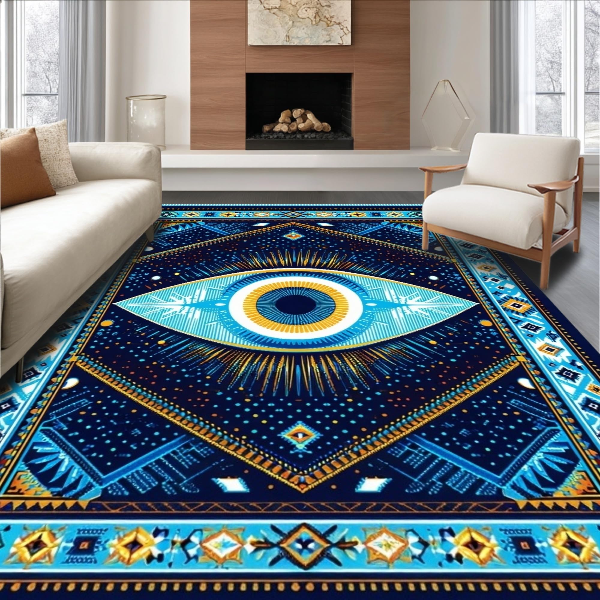 Ethnic Symbolic Patterned Floor Covering(Blue)