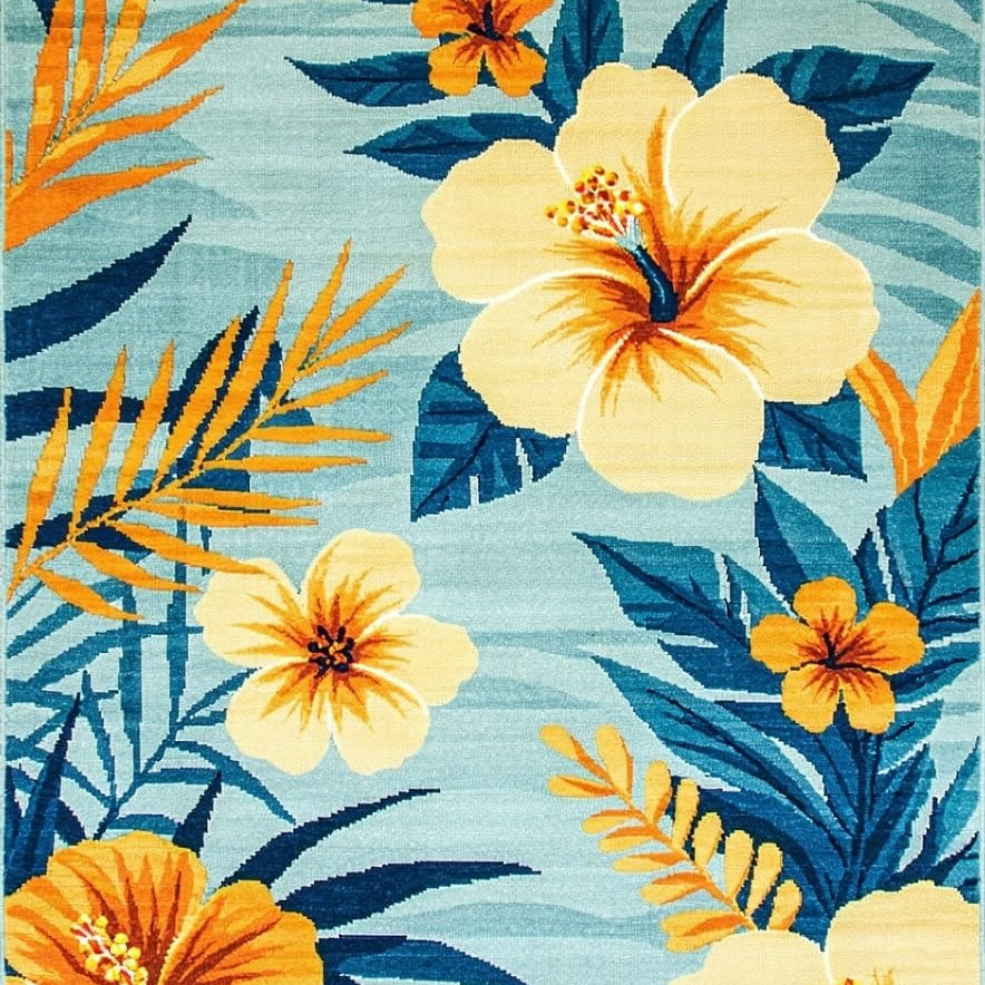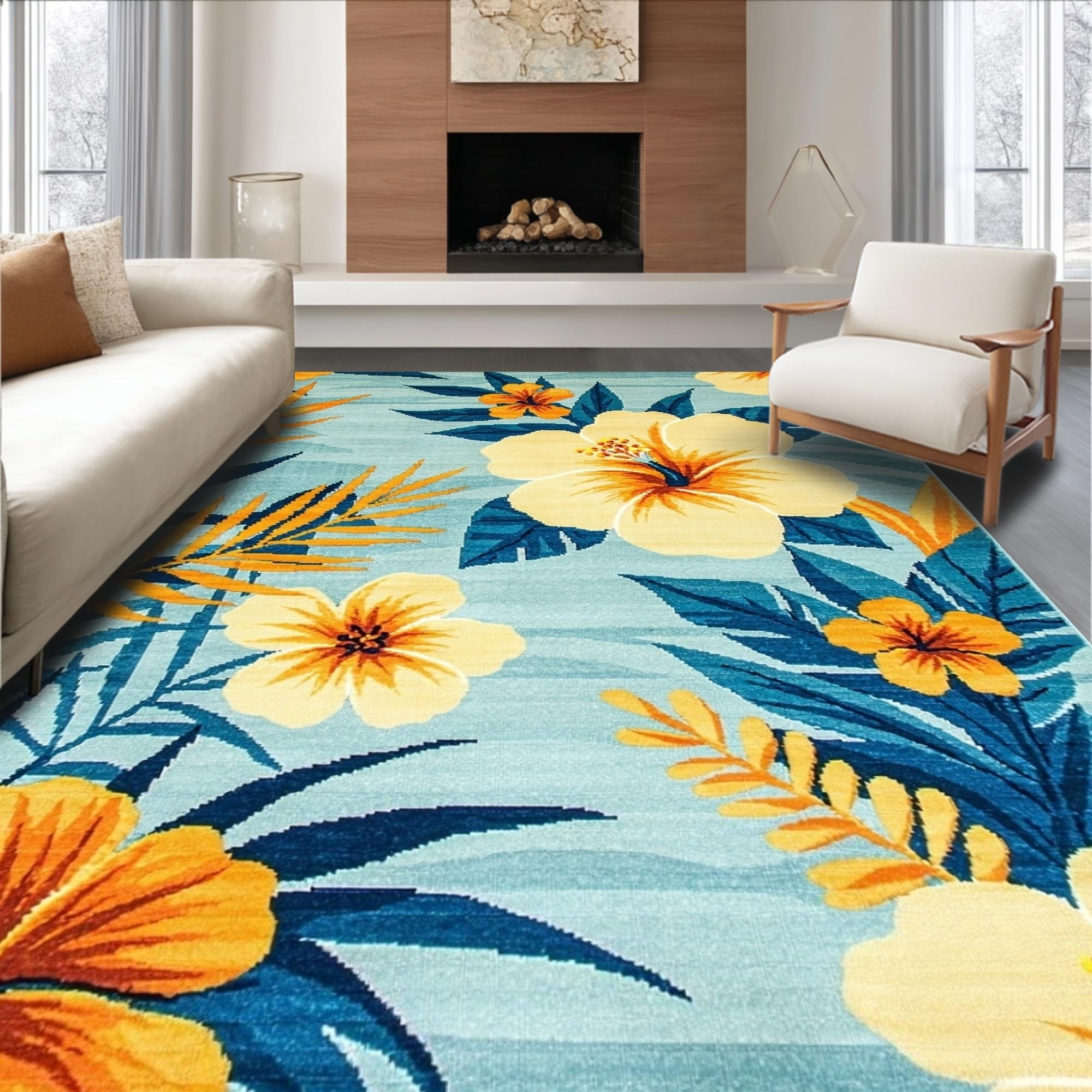 Artistic Floral Kitchen Mat with Dynamic and Natural Color Palette(Beige)