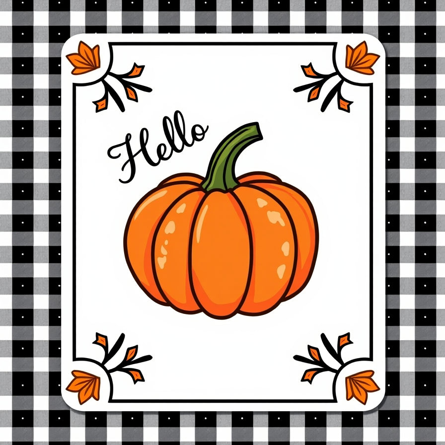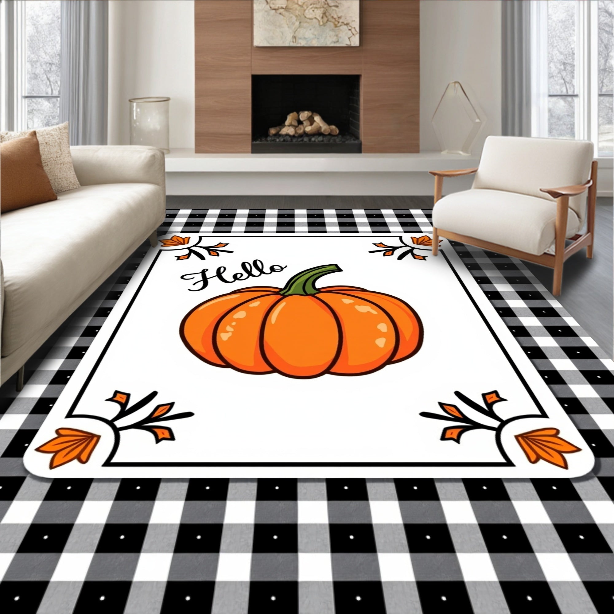 Farmhouse Entry Pumpkin Greeting Doormat Rustic Plaid(Orange)