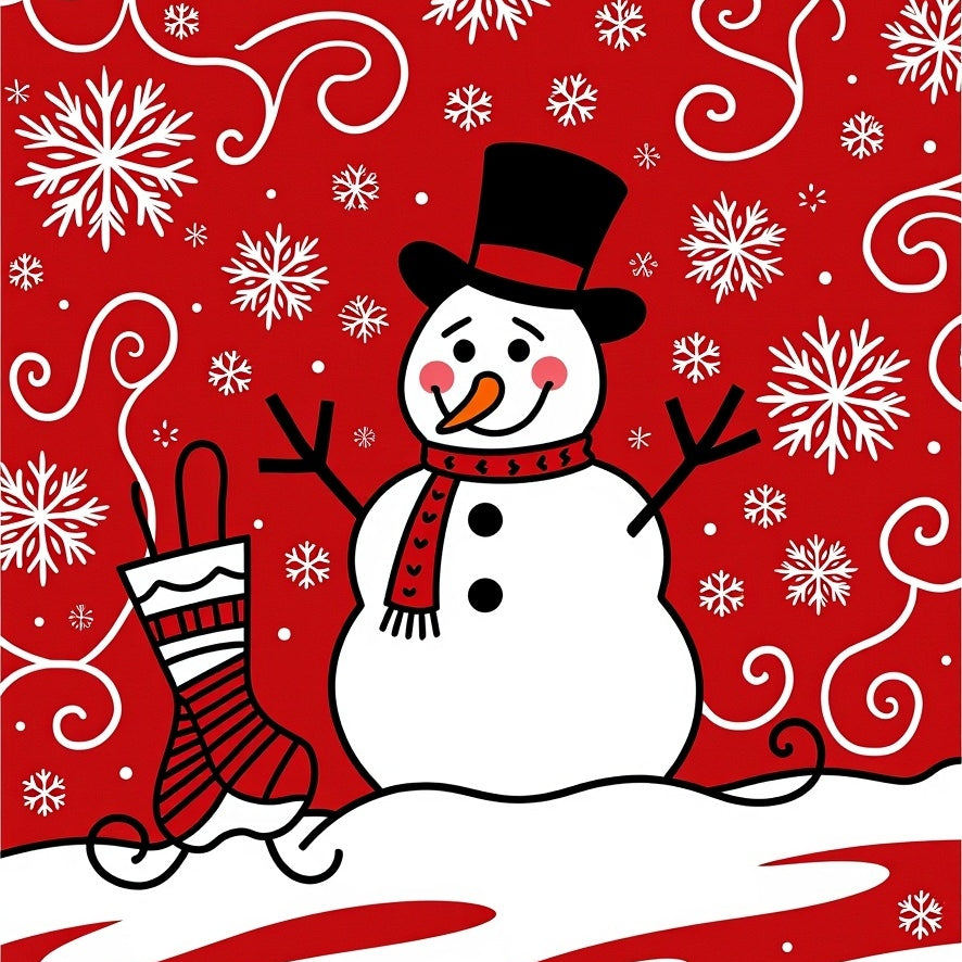 Glittering Snowflake Floor with Jolly Winter Character Motifs(Red)