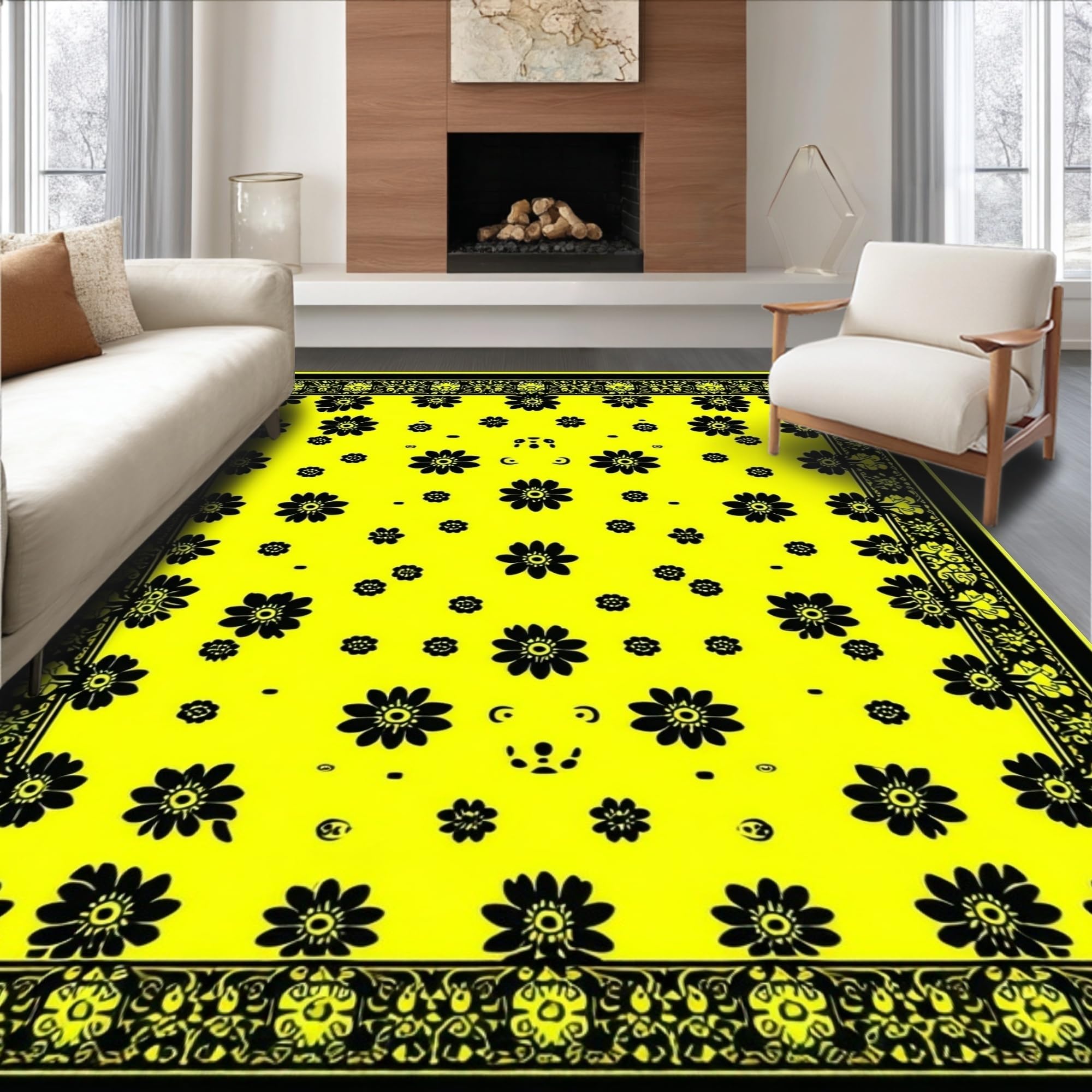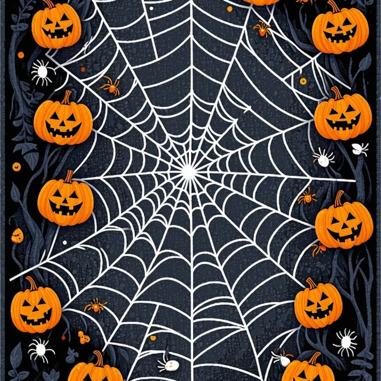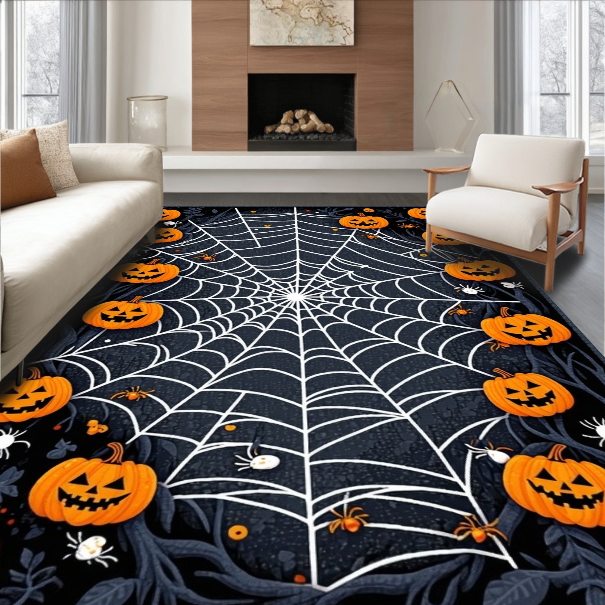 Gothic Pumpkin & Spiderweb Area Rug Non Slip Floor Mat for Seasonal Decor(Black)